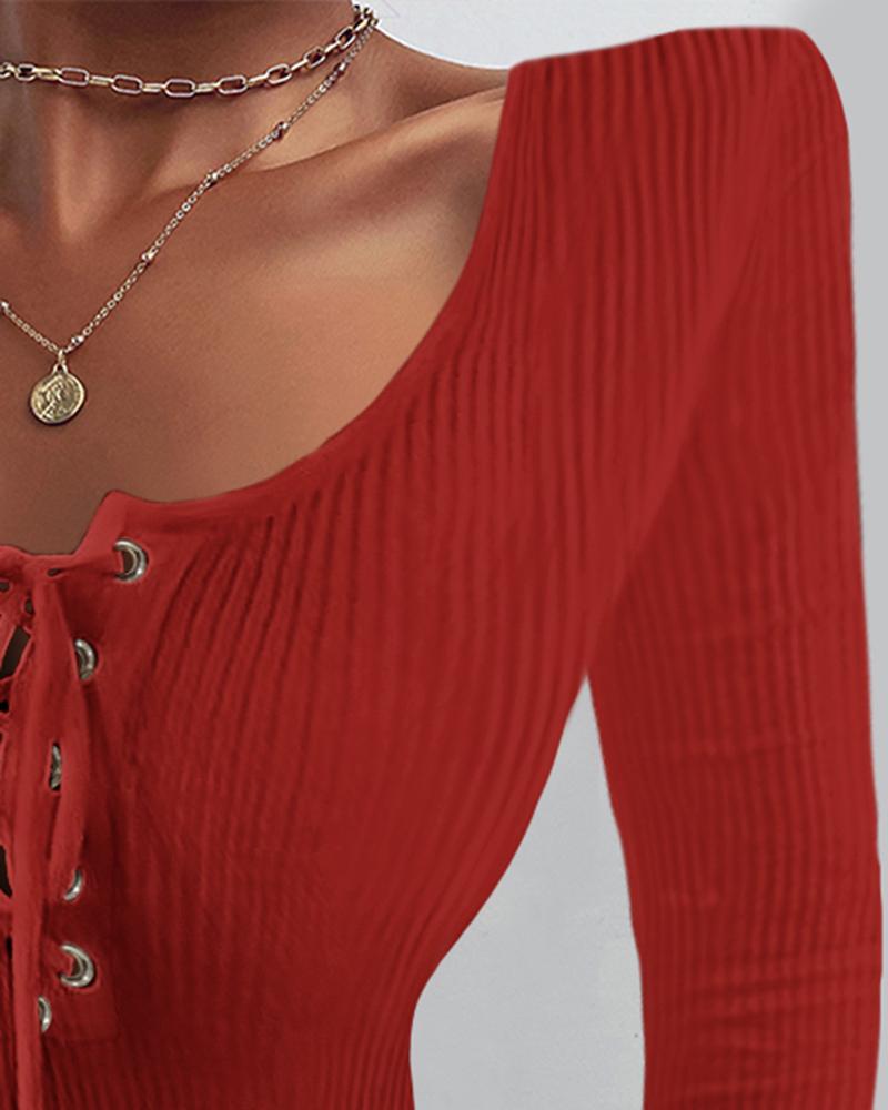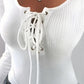 Lace up Deep U Neck Long Sleeve Bodysuit