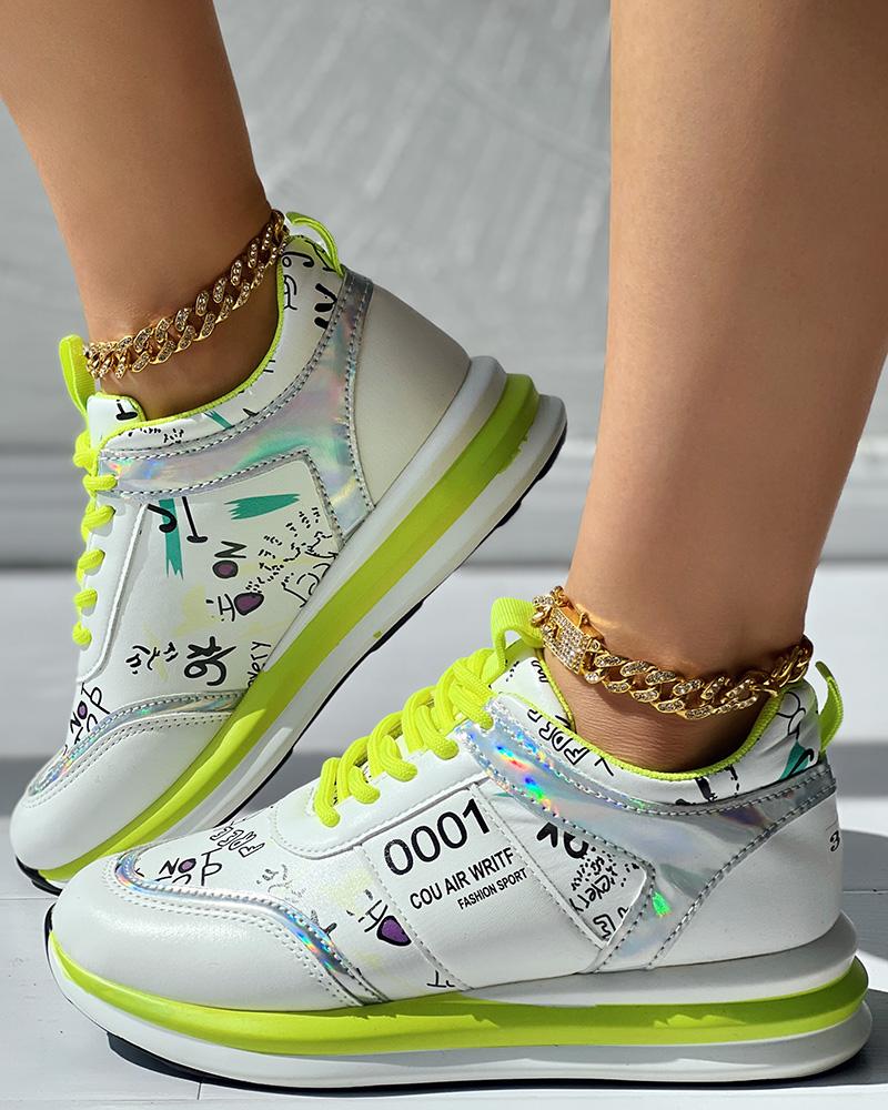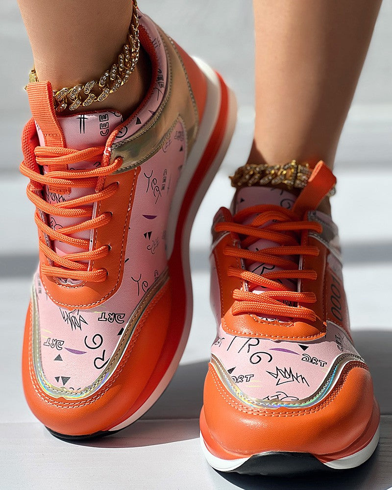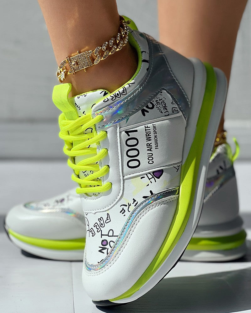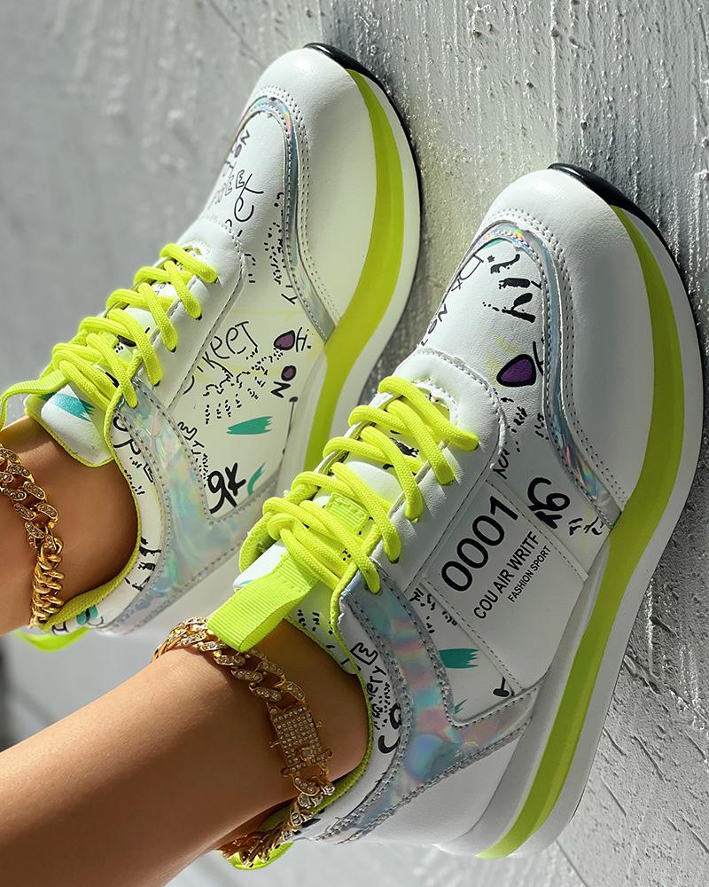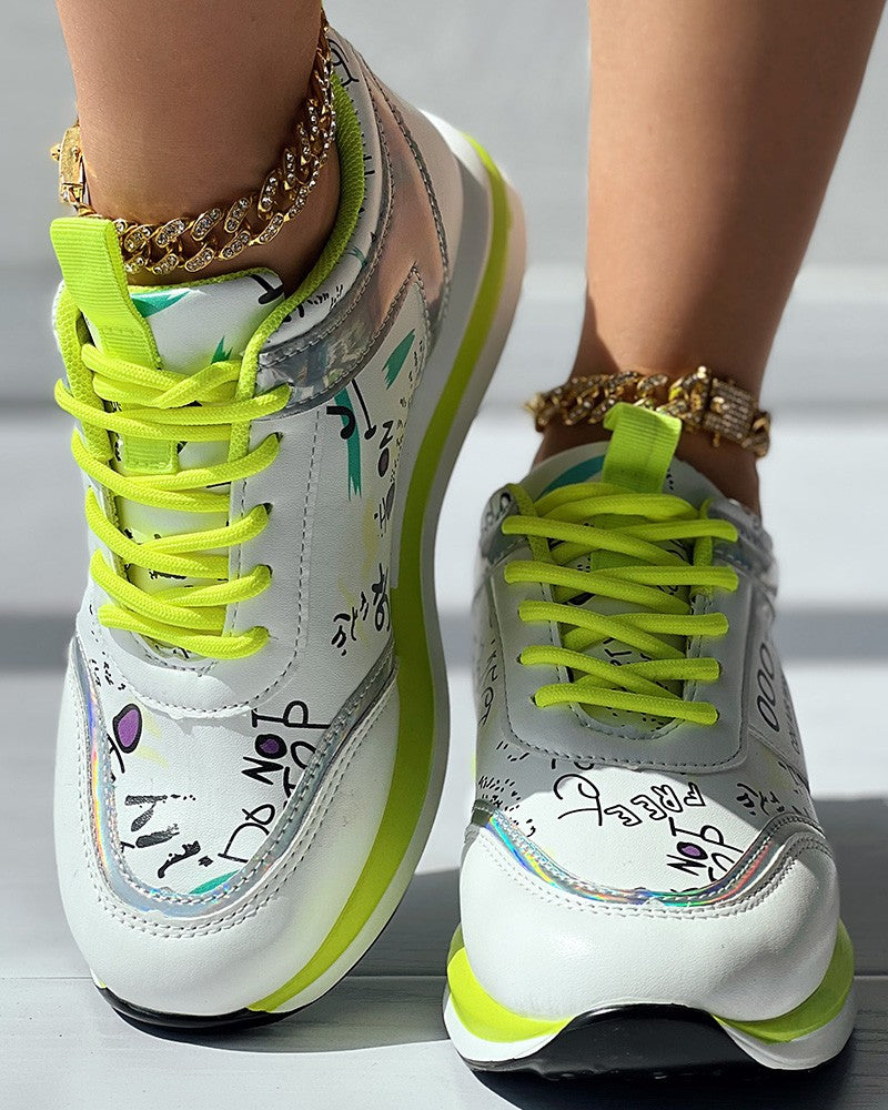 Lace up Letter Graphic Pattern Muffin Sneakers