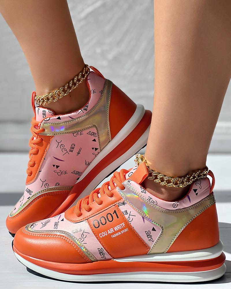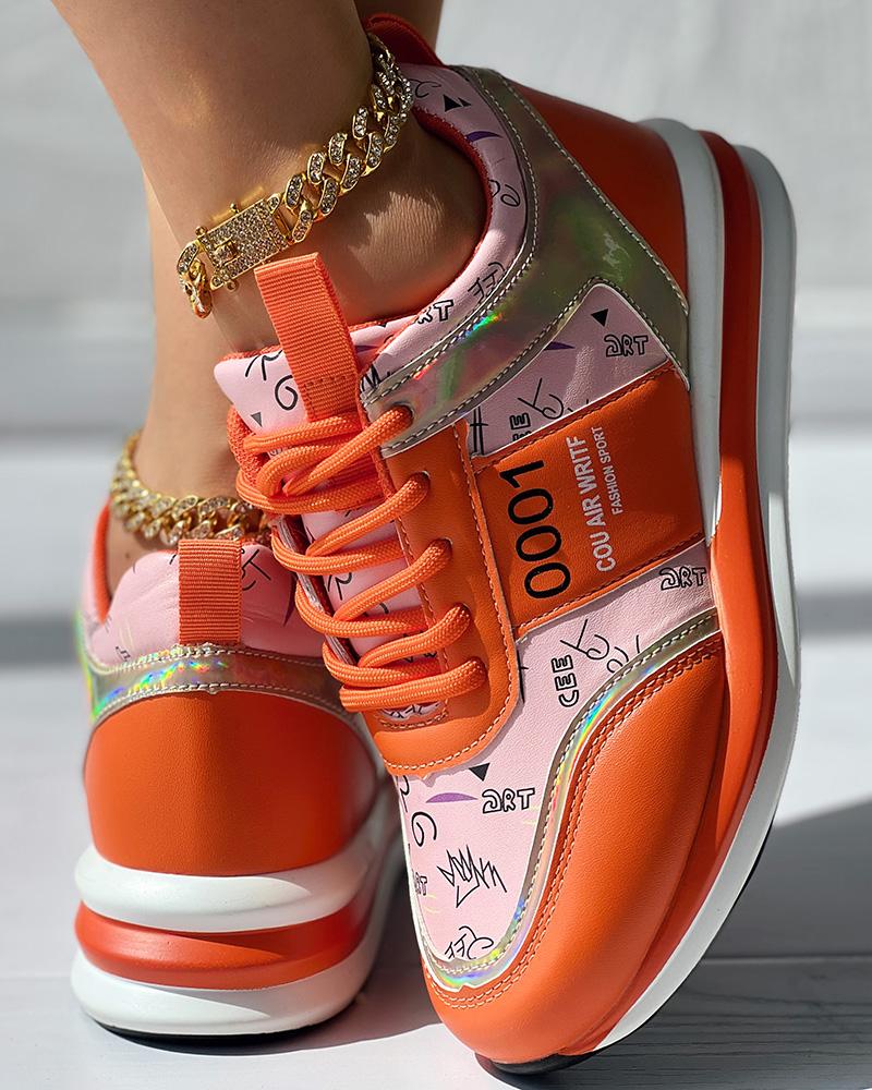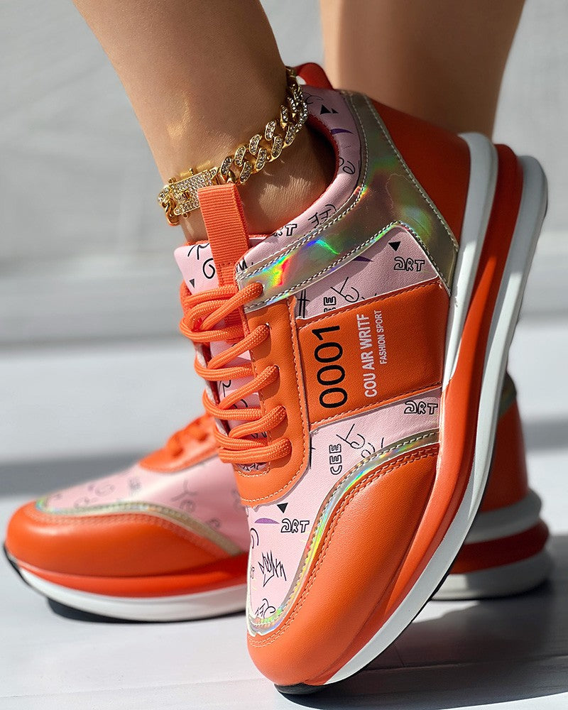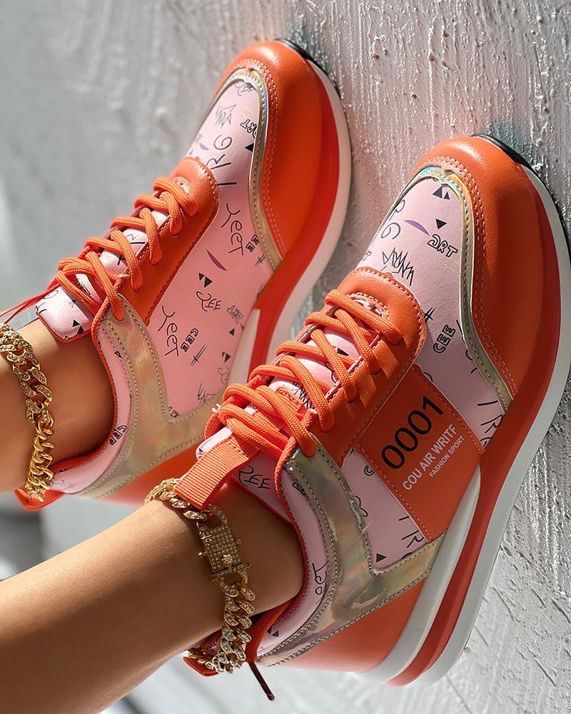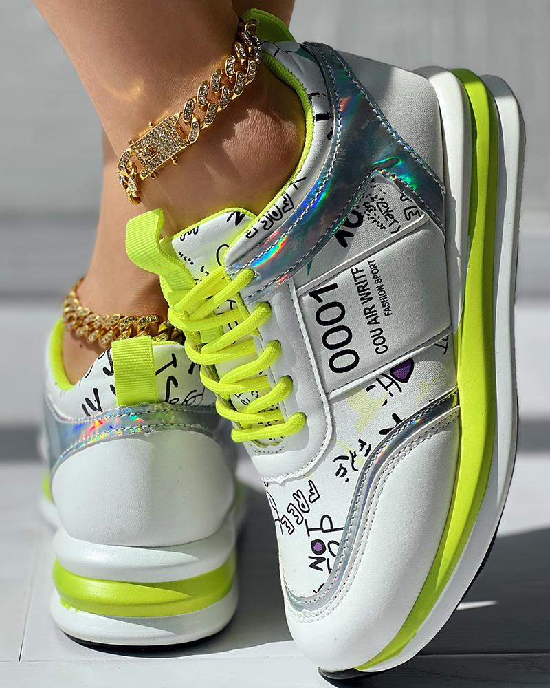 Lace up Letter Graphic Pattern Muffin Sneakers