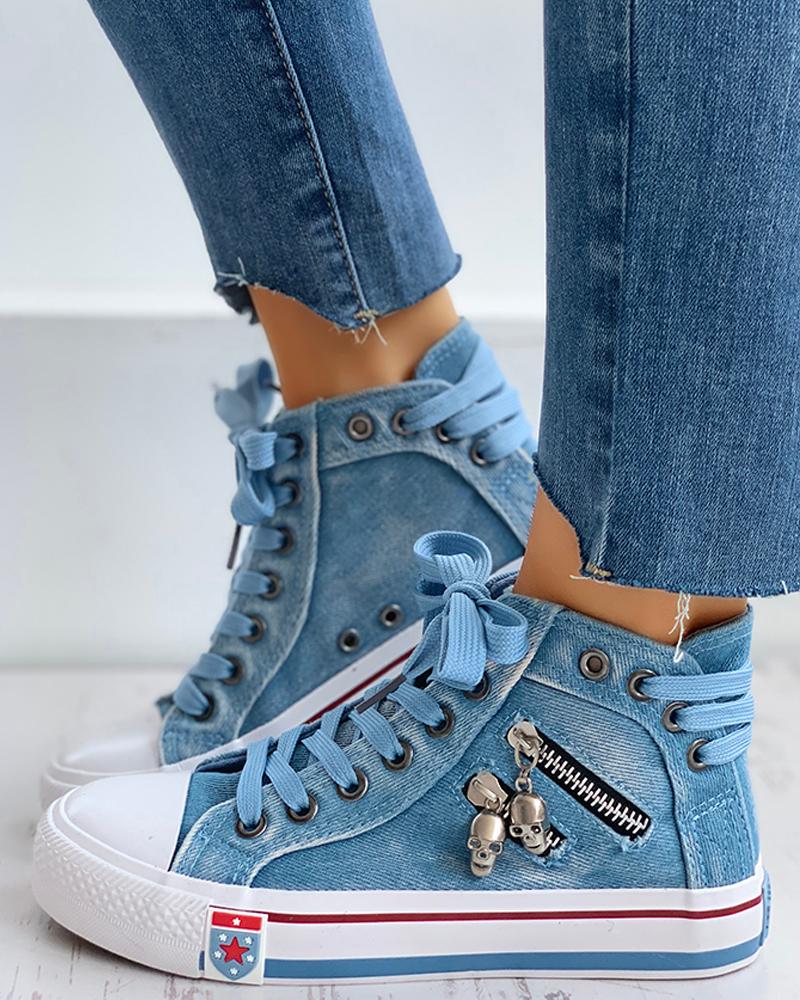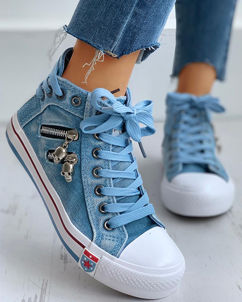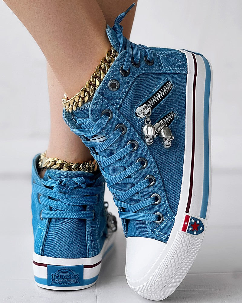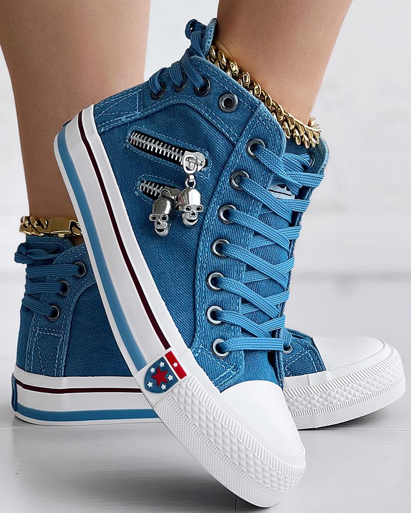 Lace Up Skeleton Zipper Detail Casual Sneakers