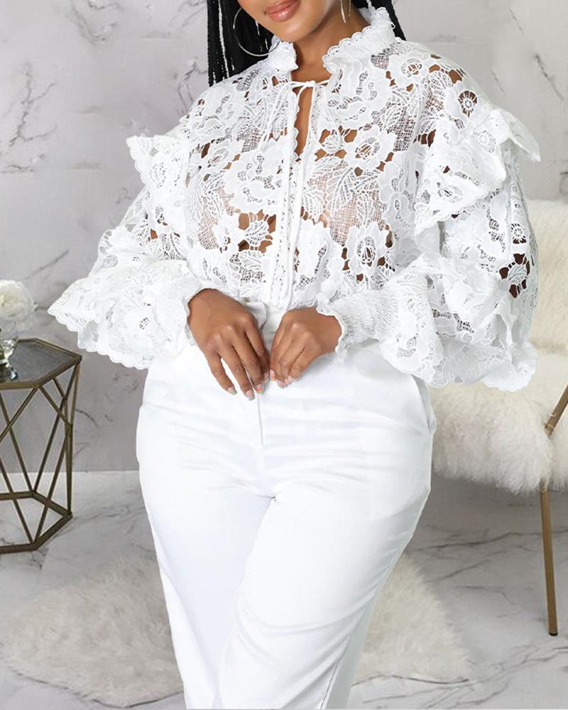Lantern Sleeve Crochet Lace Shirt