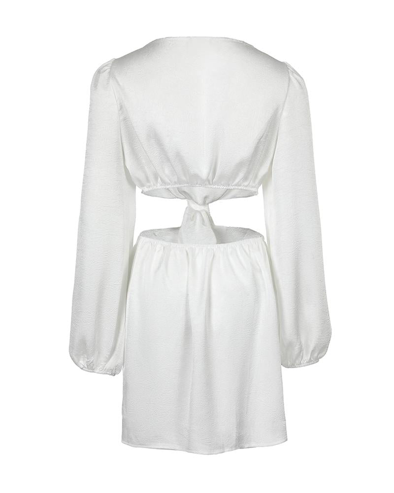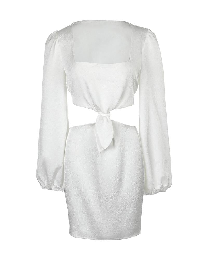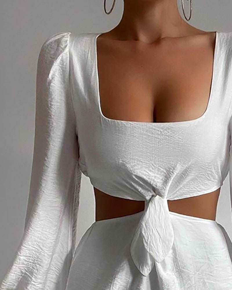 Lantern Sleeve Cutout Knotted Front Party Dress