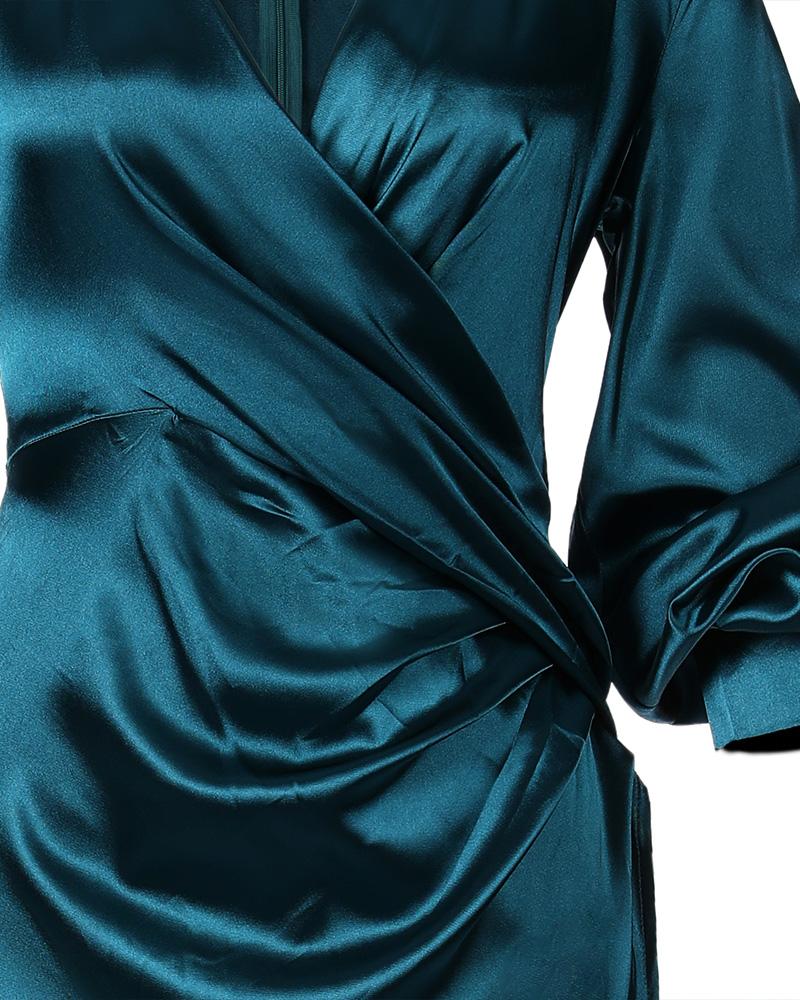 Lantern Sleeve High Slit Wrap Maxi Dress