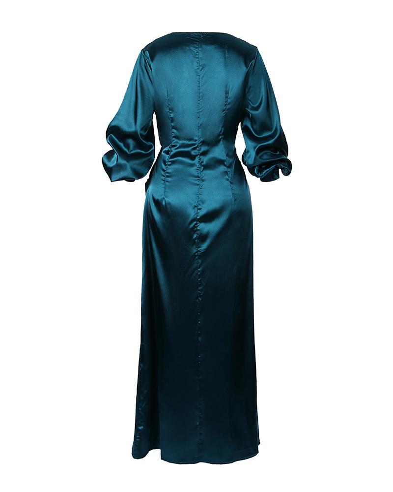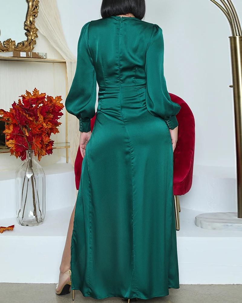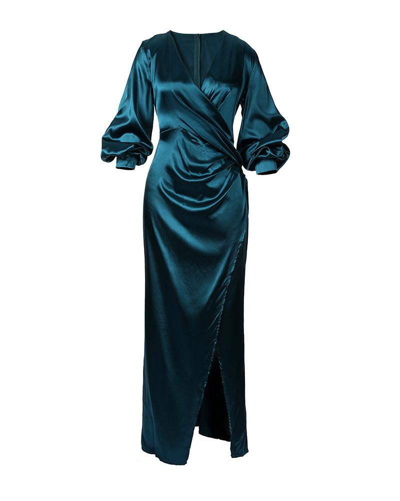 Lantern Sleeve High Slit Wrap Maxi Dress