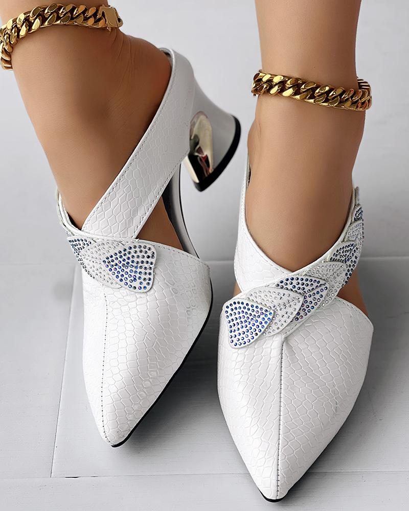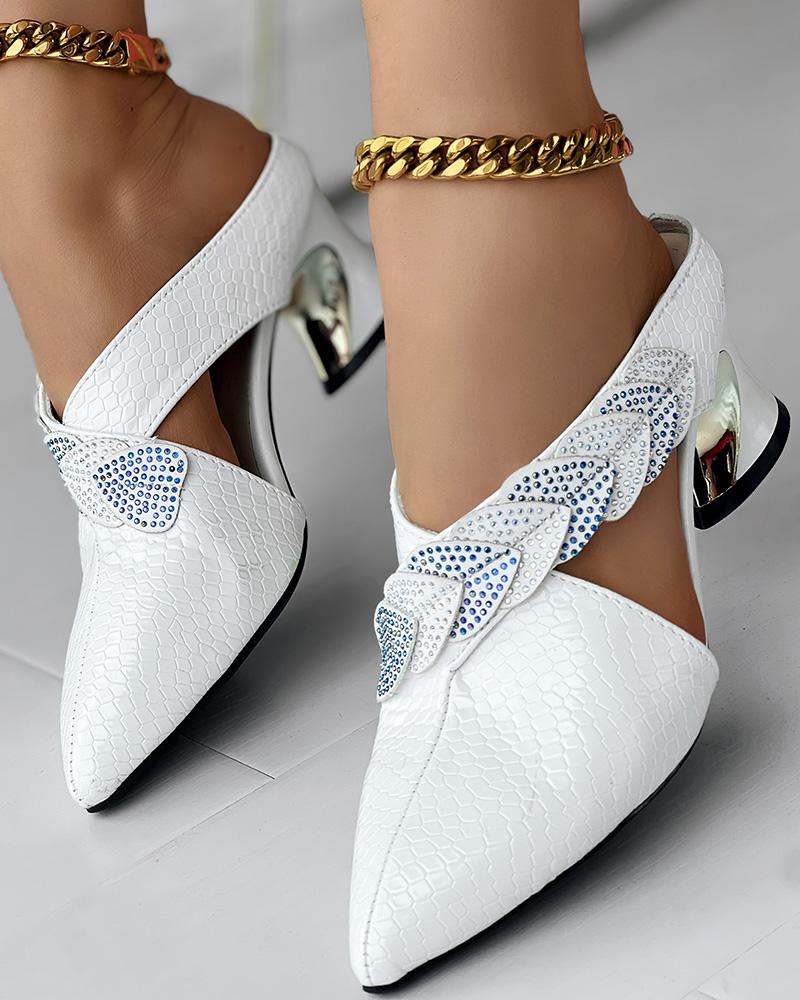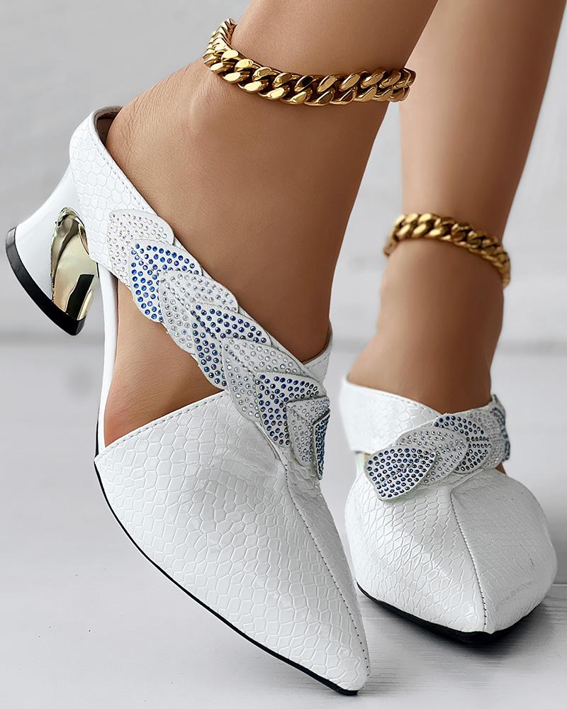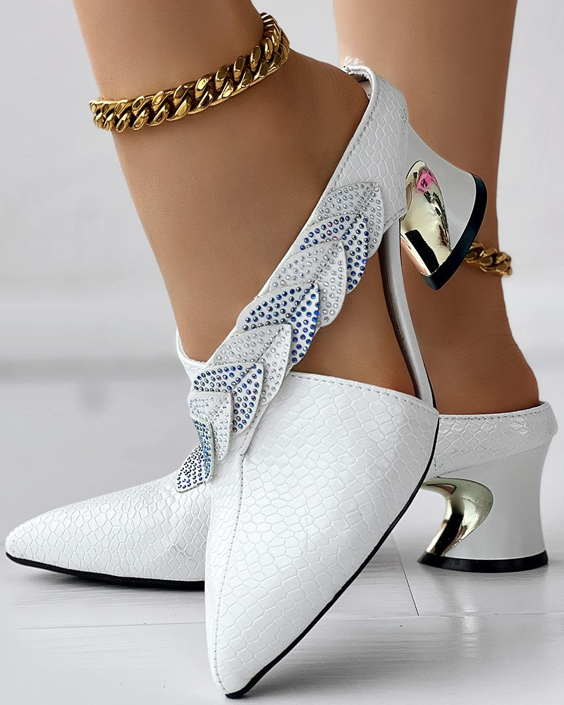 Leaf Pattern Rhinestone Decor Hollow Out Chunky
