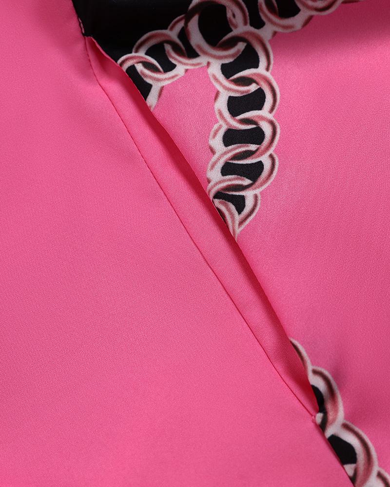 Leopard Chain Print Buttoned Pocket Design Shirt Dress