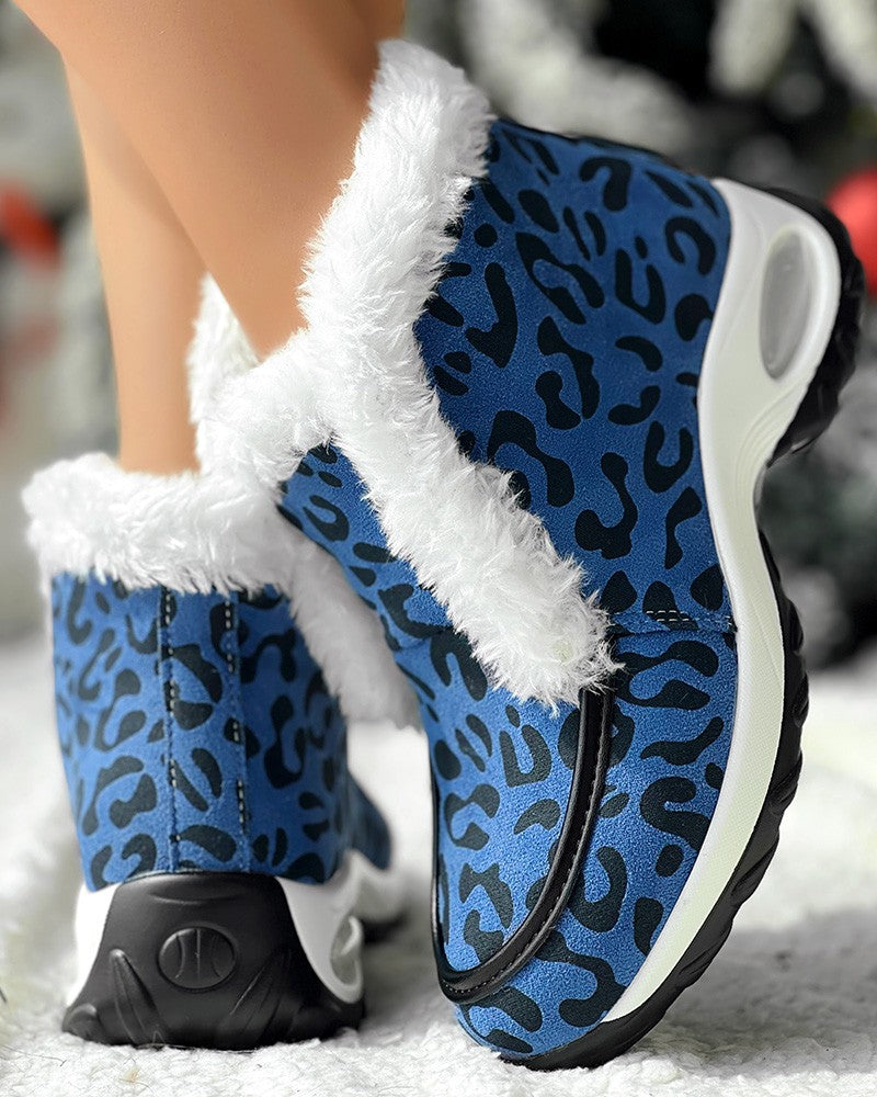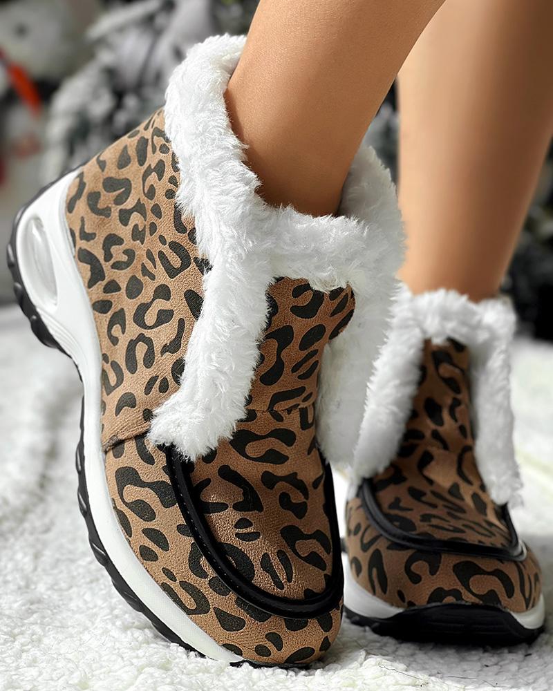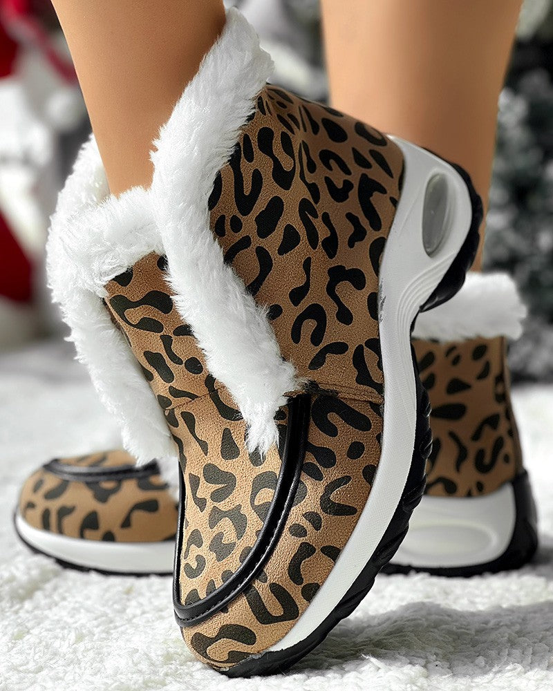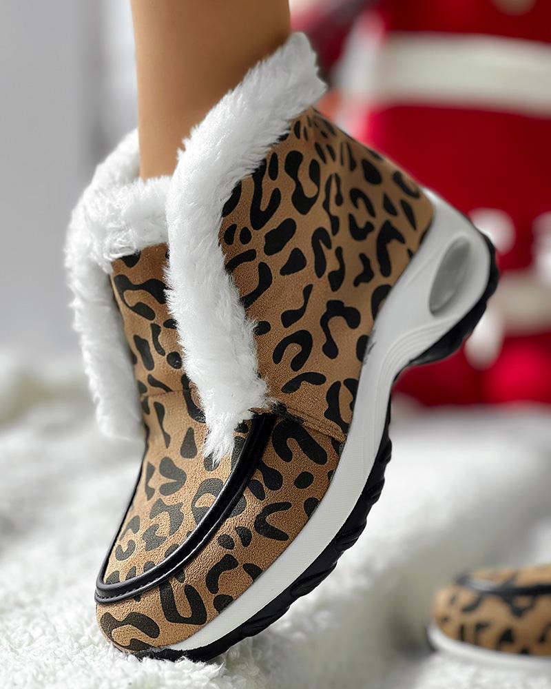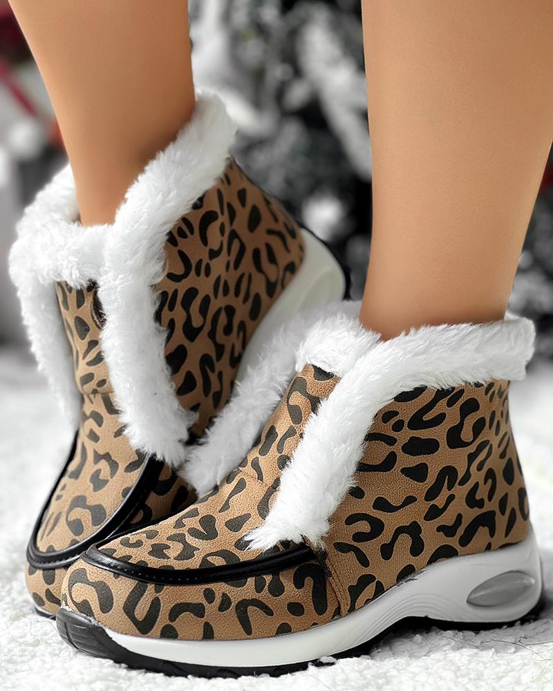 Leopard Fuzzy Detail Lined Warm Ankle Boots