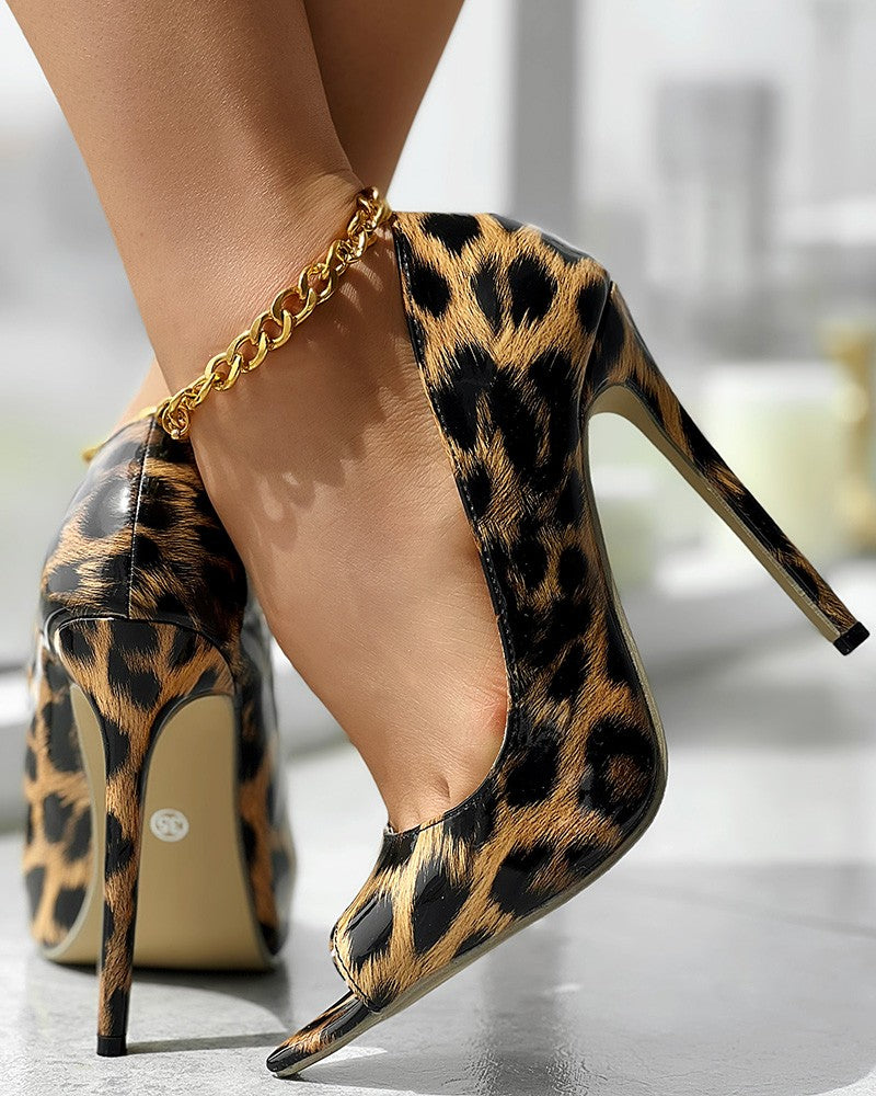 Leopard Peep Toe Stiletto Heels Sandals