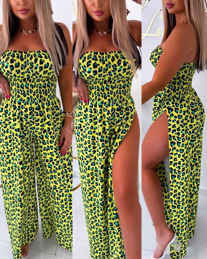 Leopard Print Bandeau Sleeveless Wide Leg Jumpsuit