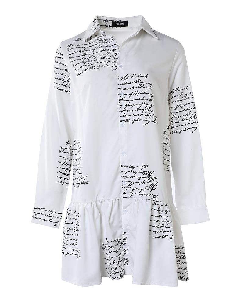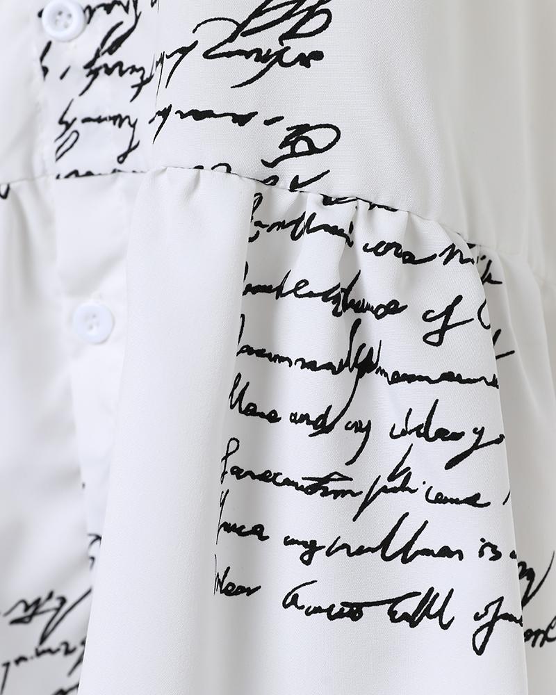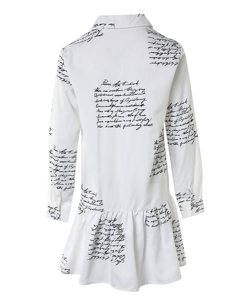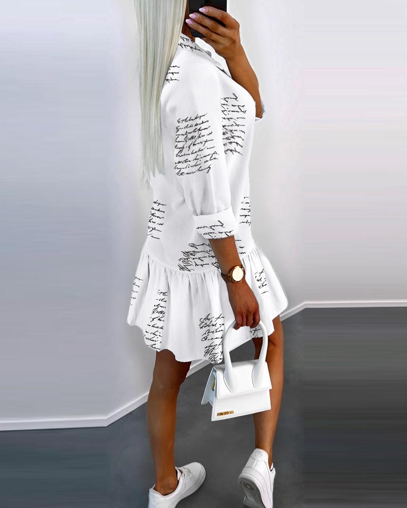Letter Print Buttoned Ruffle Hem Shirt Dress