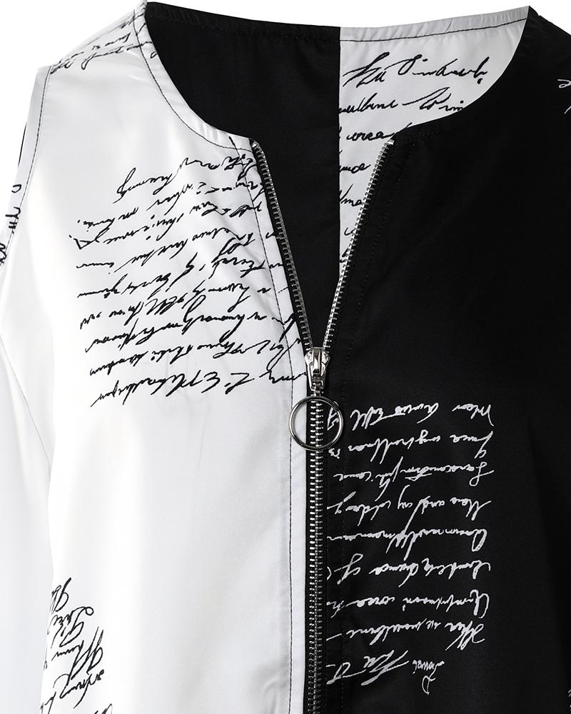 Letter Print Colorblock Cold Shoulder Top