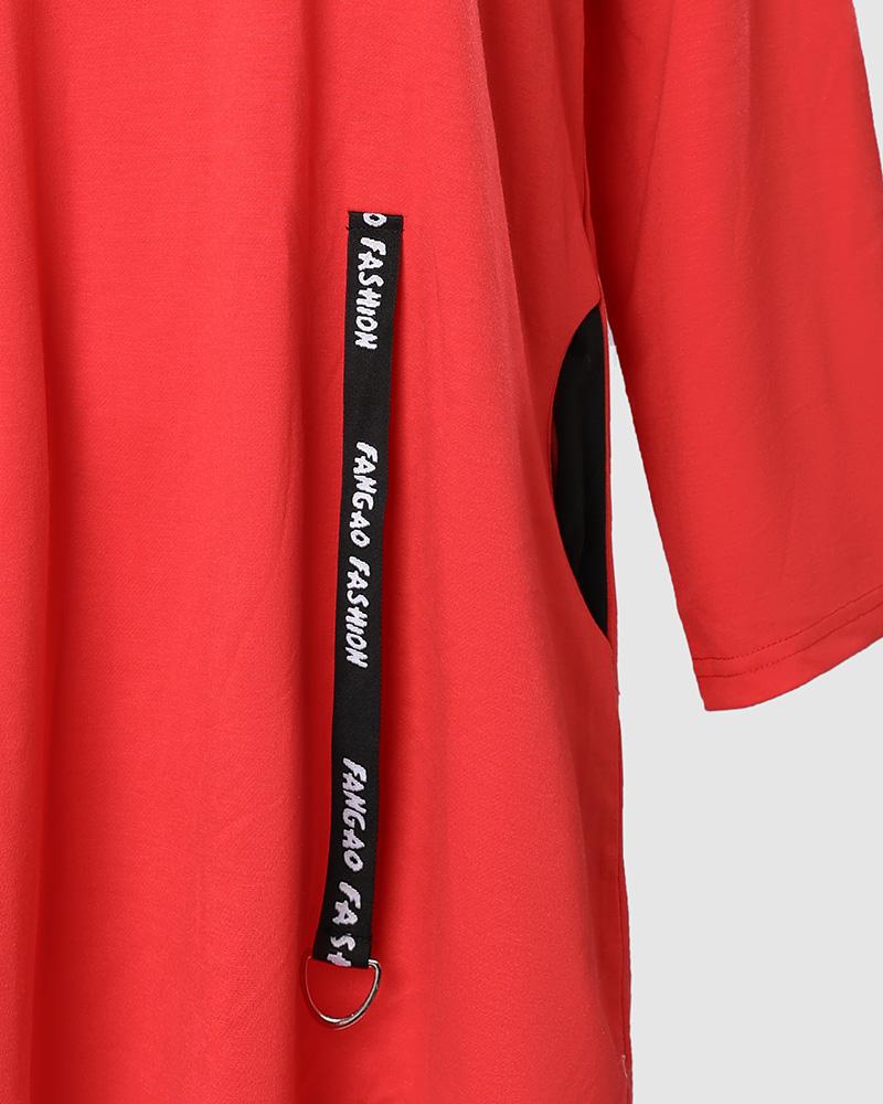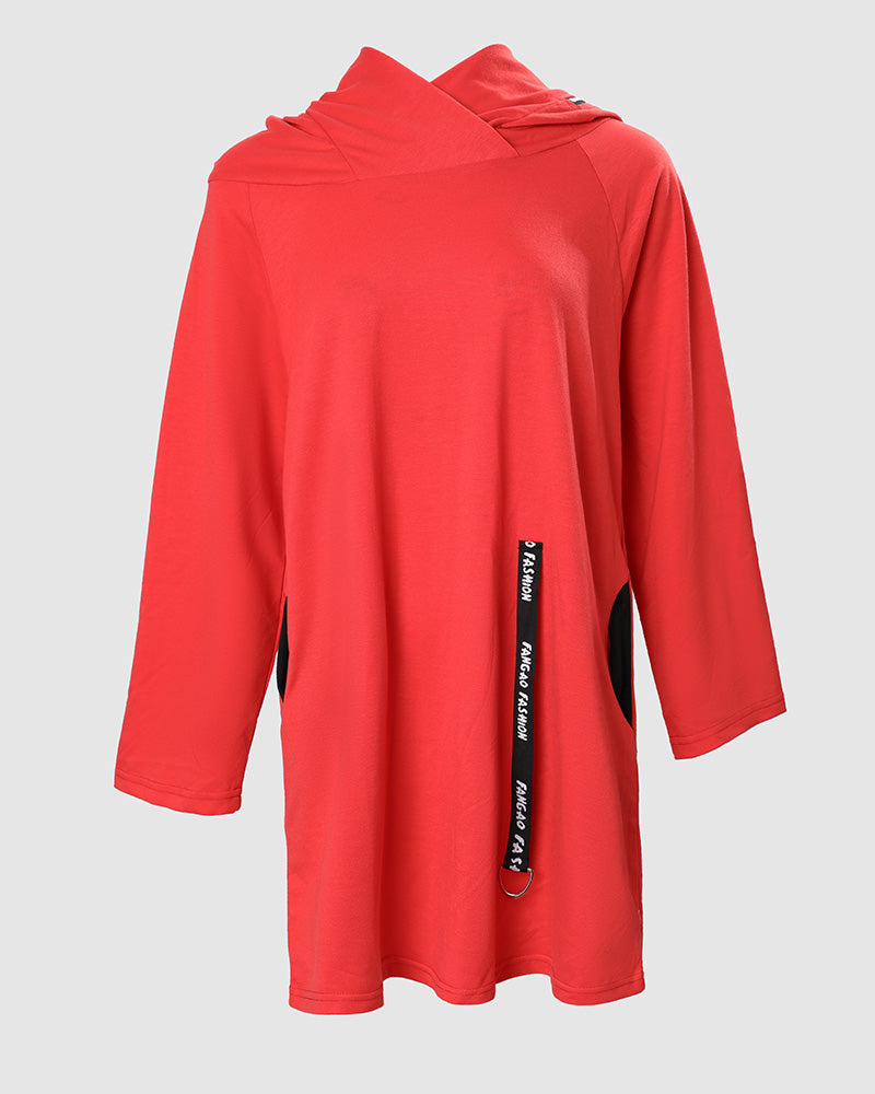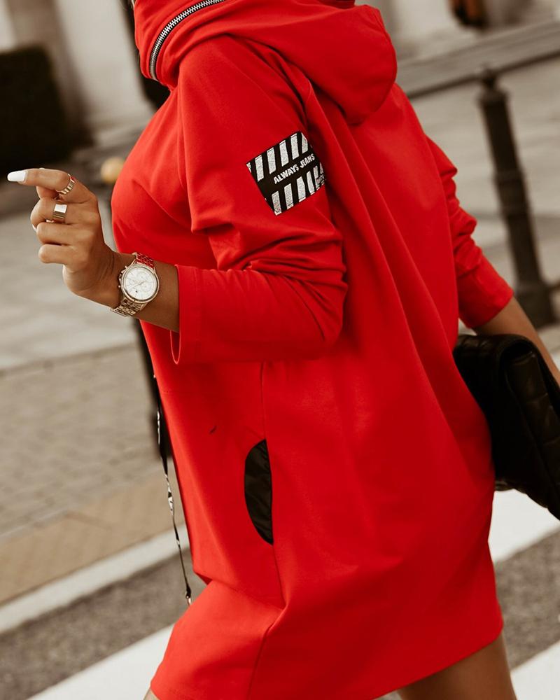 Letter Print Zipper Design Hooded Sweatshirt Dress