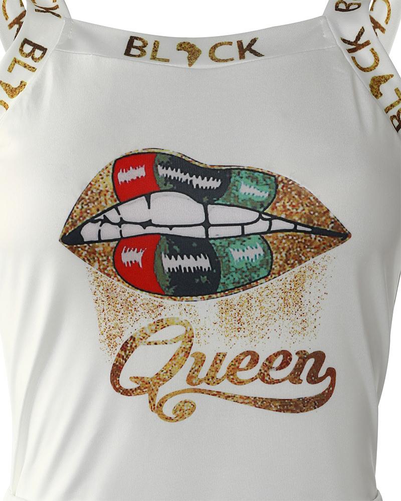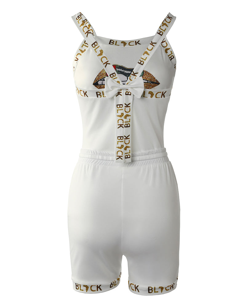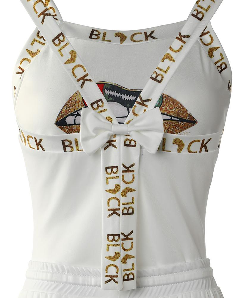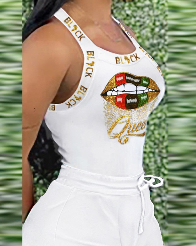 Lip Letter Print Tank Top & Drawstring Shorts Set