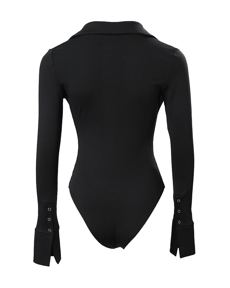 Long Sleeve Button Detail Skinny Bodysuit