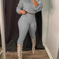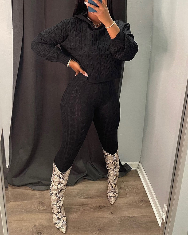 Long Sleeve Cable Knit Hooded Sweater & Pants Set