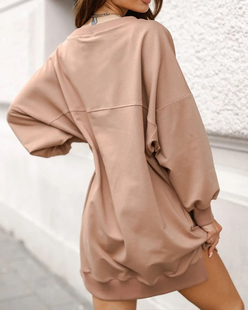 Long Sleeve Flap Pocket Split Hem Sweatshirt Dress