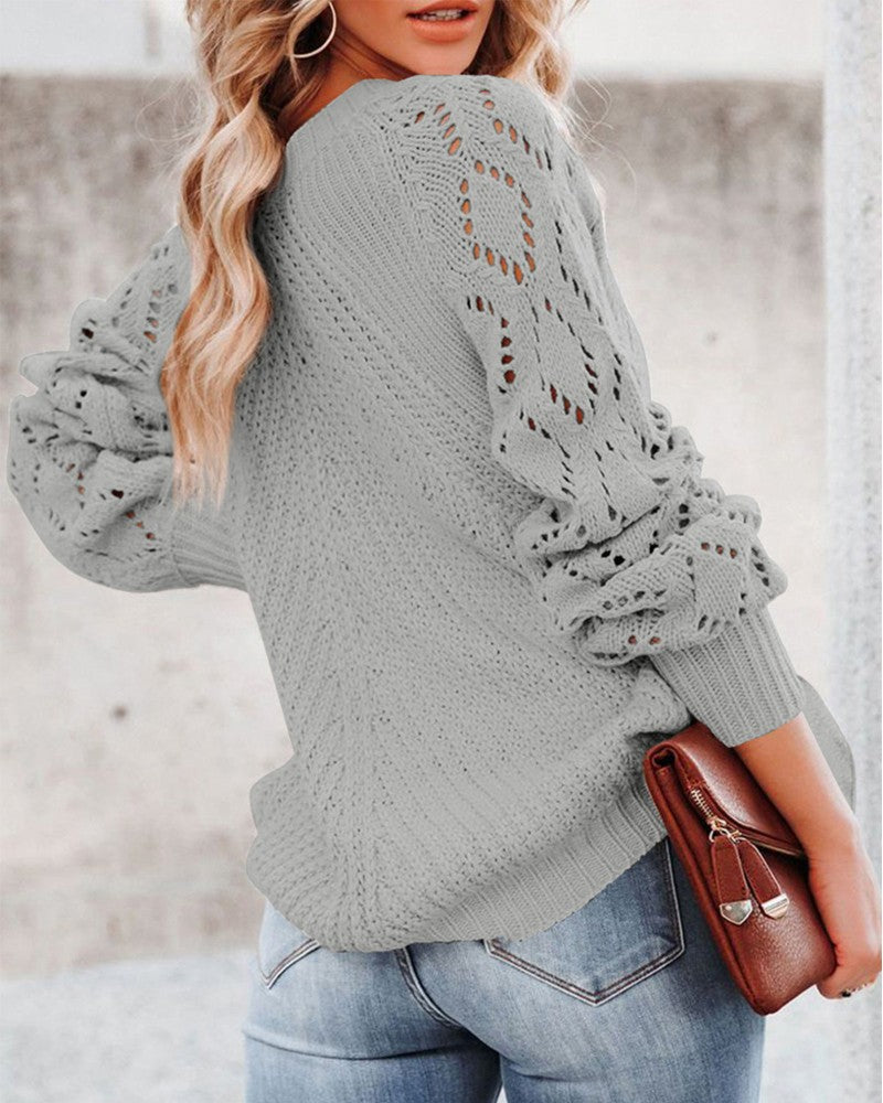 Long Sleeve Pointelle Knit Sweater