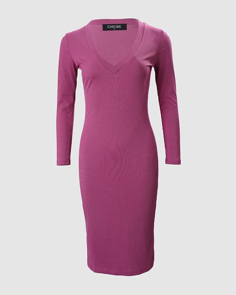 Long Sleeve Ribbed Bodycon Dress