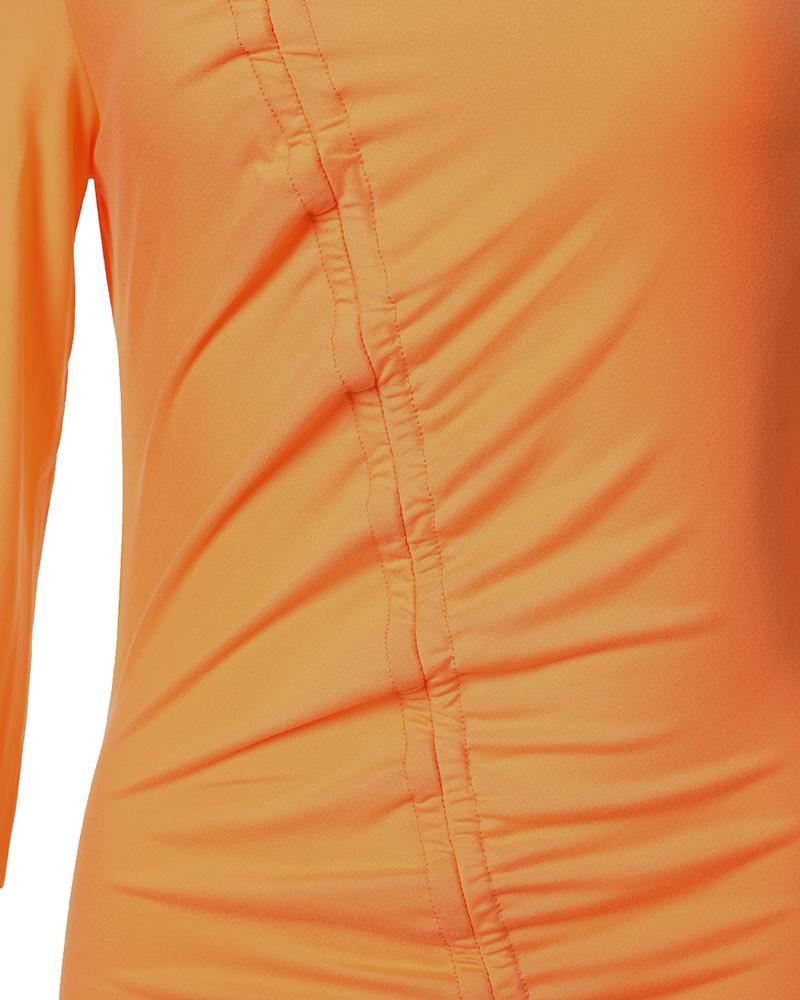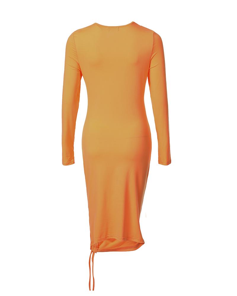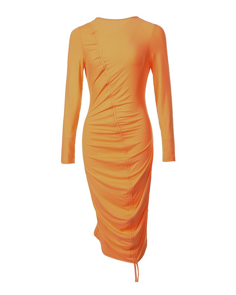 Long Sleeve Ruched Drawstring Bodycon Dress