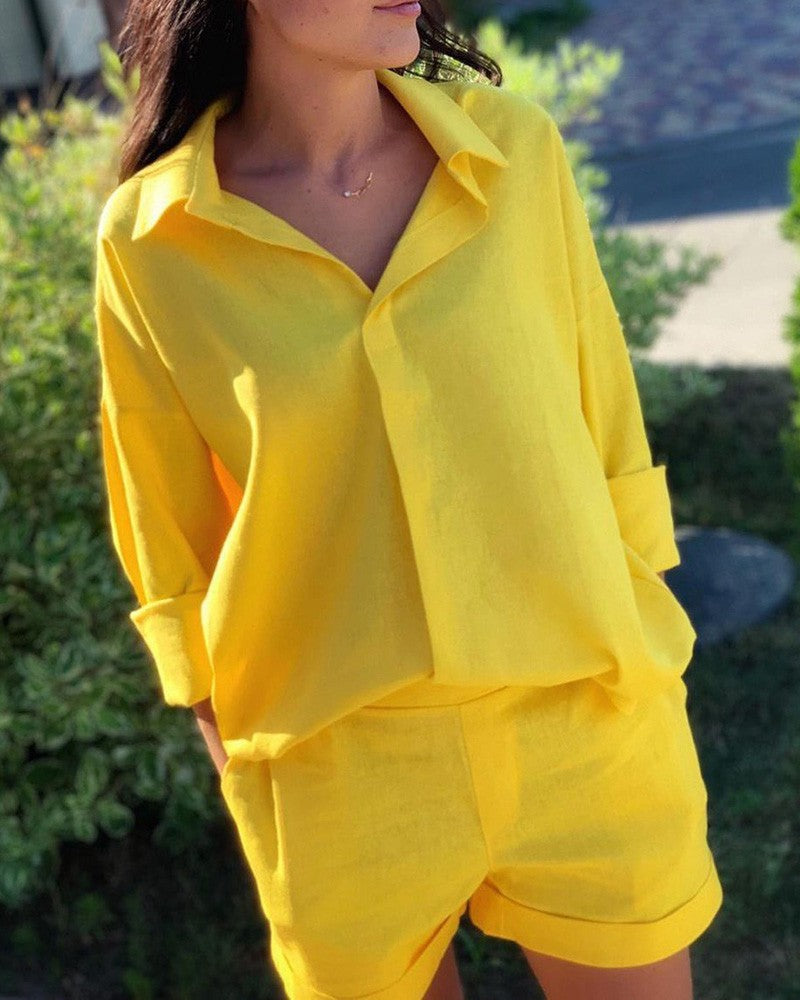 Long Sleeve Shirt & Pocket Design Shorts Set