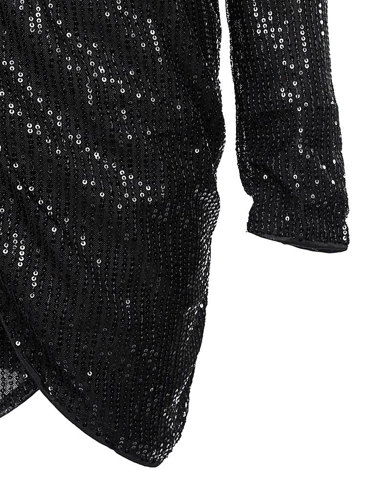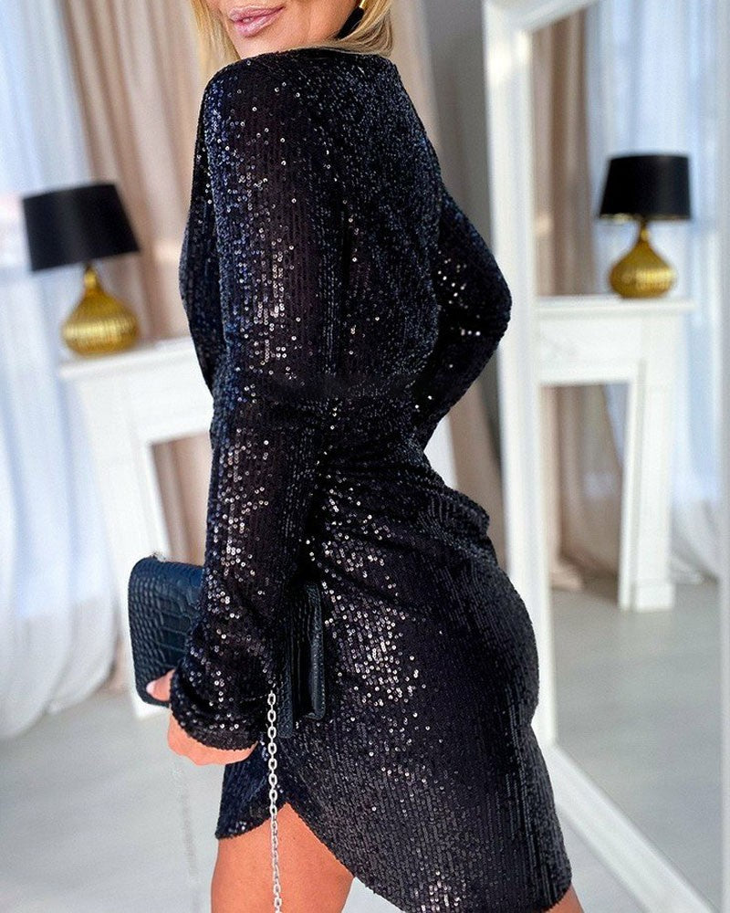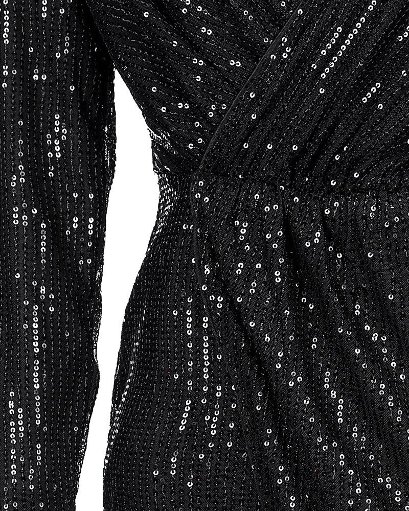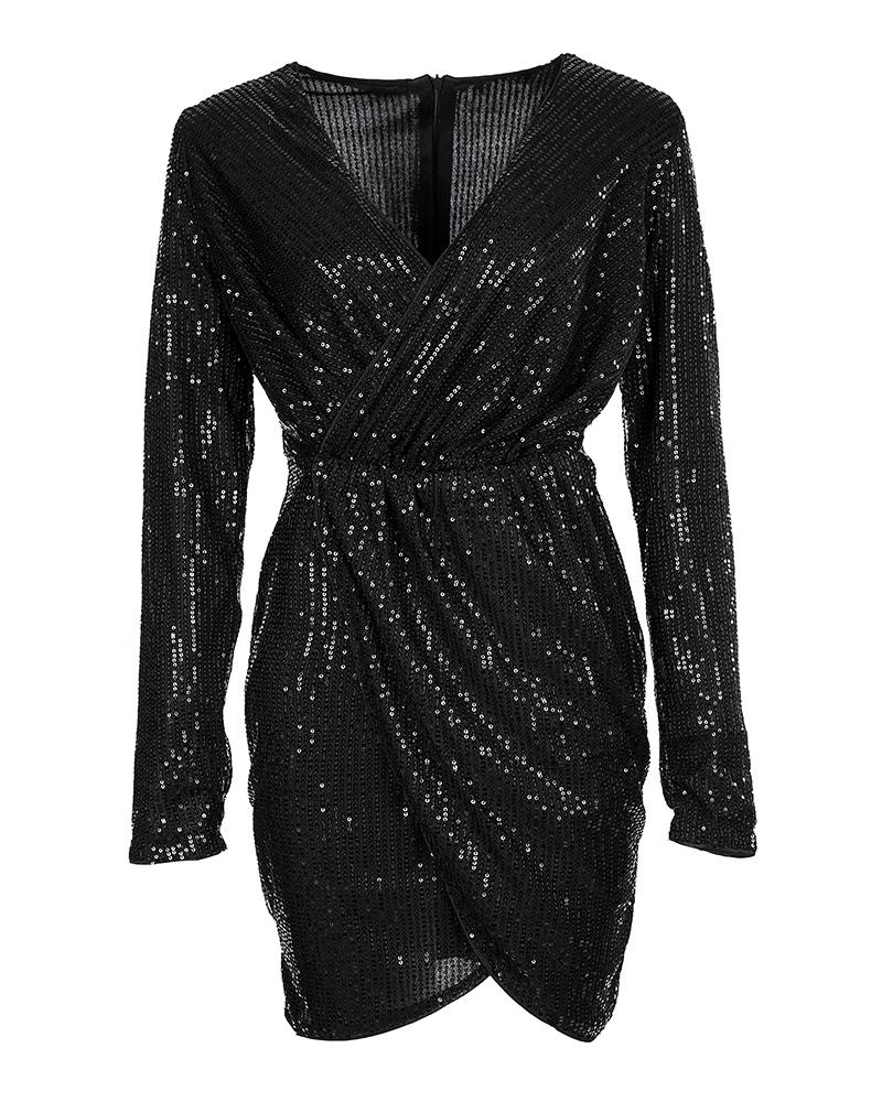 Long Sleeve Wrap Draped Detail Sequin Dress