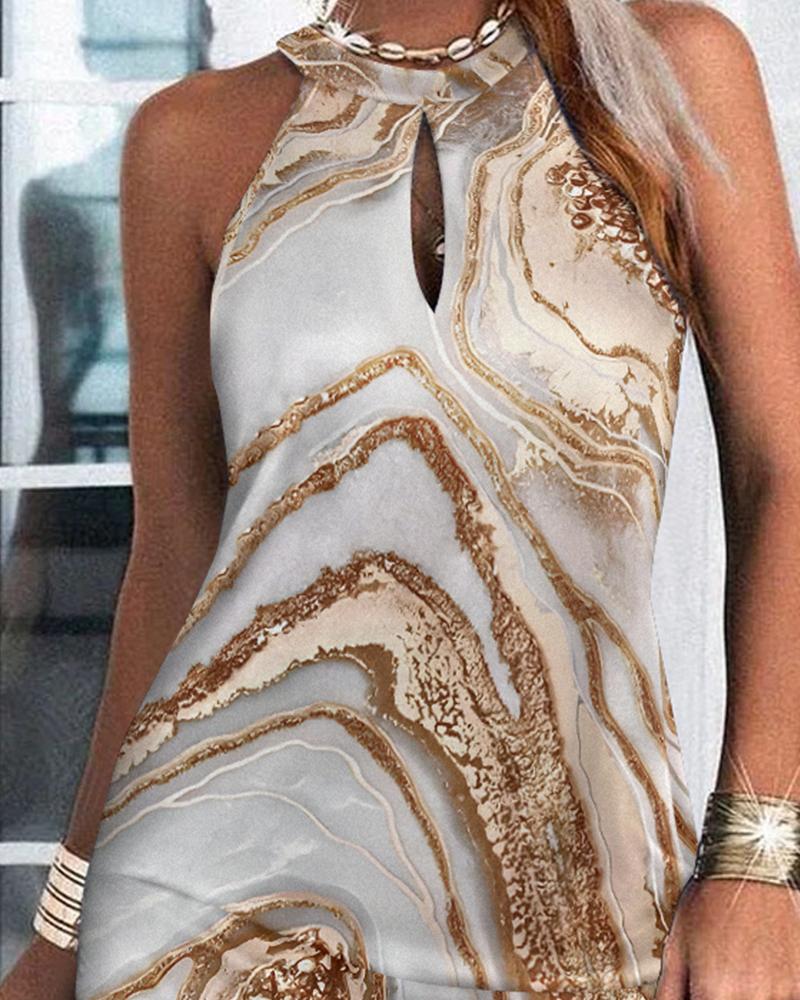 Marble Print Halter Casual Dress