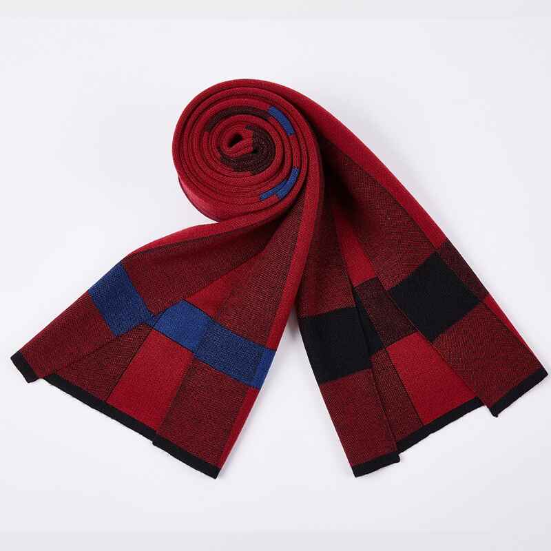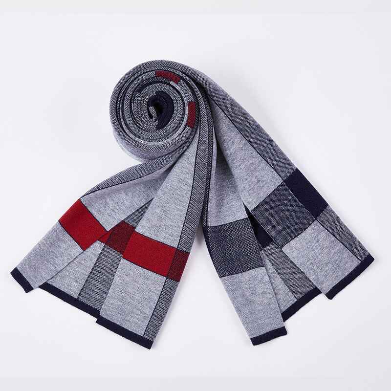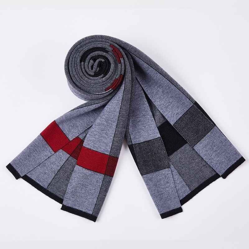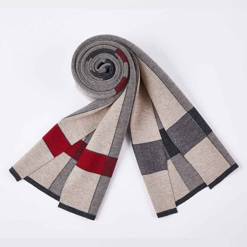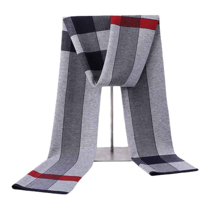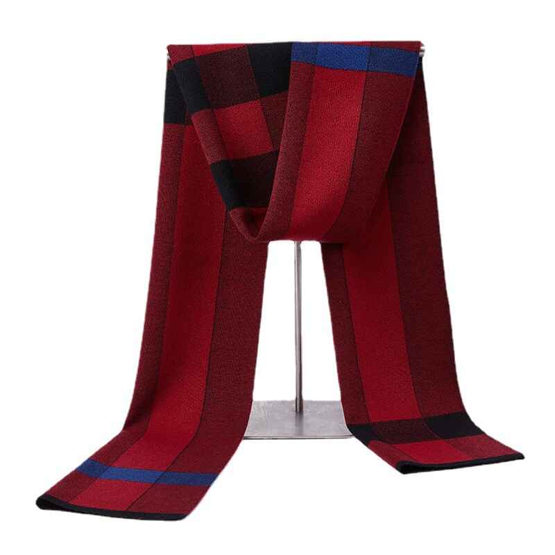 Plaid Striped Wool Scarf for Men - Winter Soft Thick Cashmere Knit Scarves D012