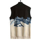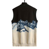 Men's Causal V-neck Knit Sleeveless Cotton Sweater Vest Snow Mountain Pattern Print Pullover G096