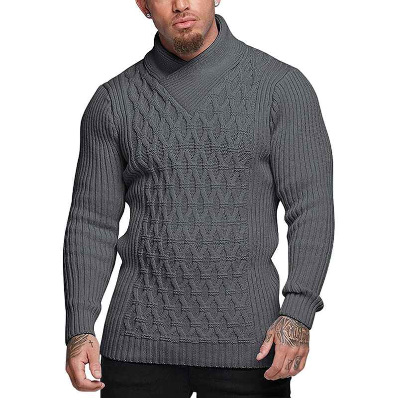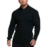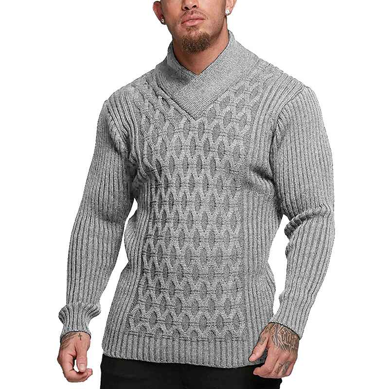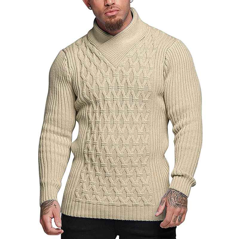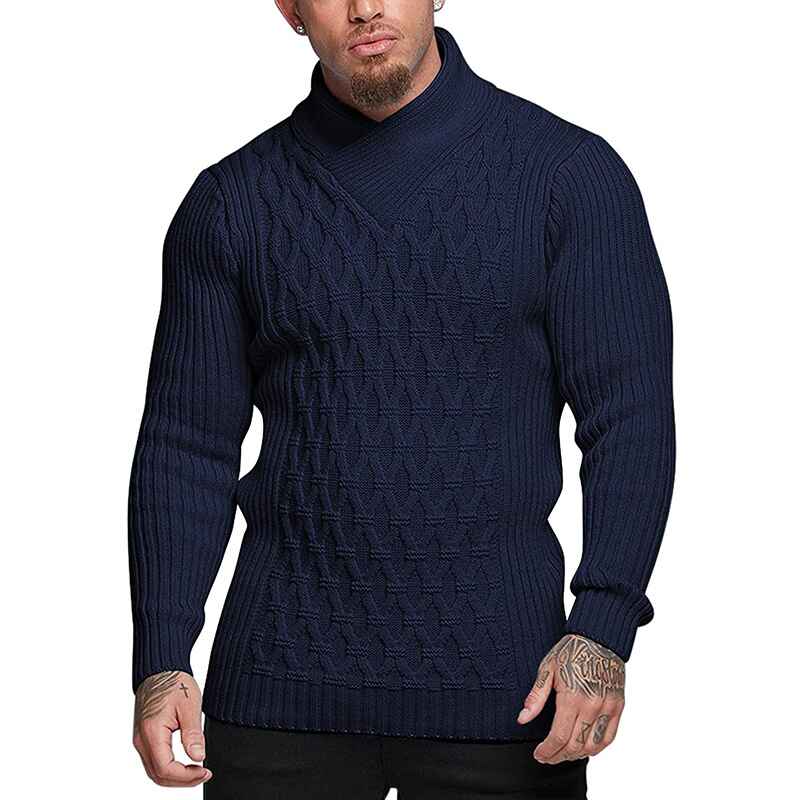 Men's Shawl Collar Sweaters Turtleneck Cable Knitted Pullover Sweater Loose Fit Knitwear Casual Winter Outwear G064