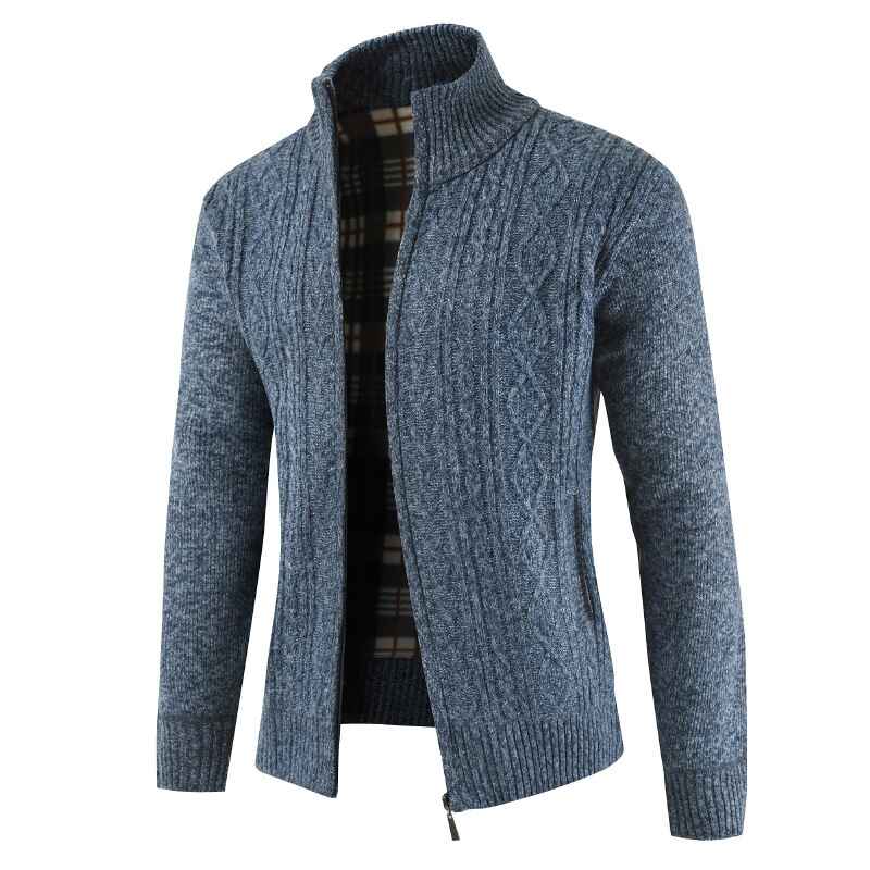 Men's Full Zip Cardigan Sweater Slim Fit Cable Knitted Zip Up Sweater with Pockets G080