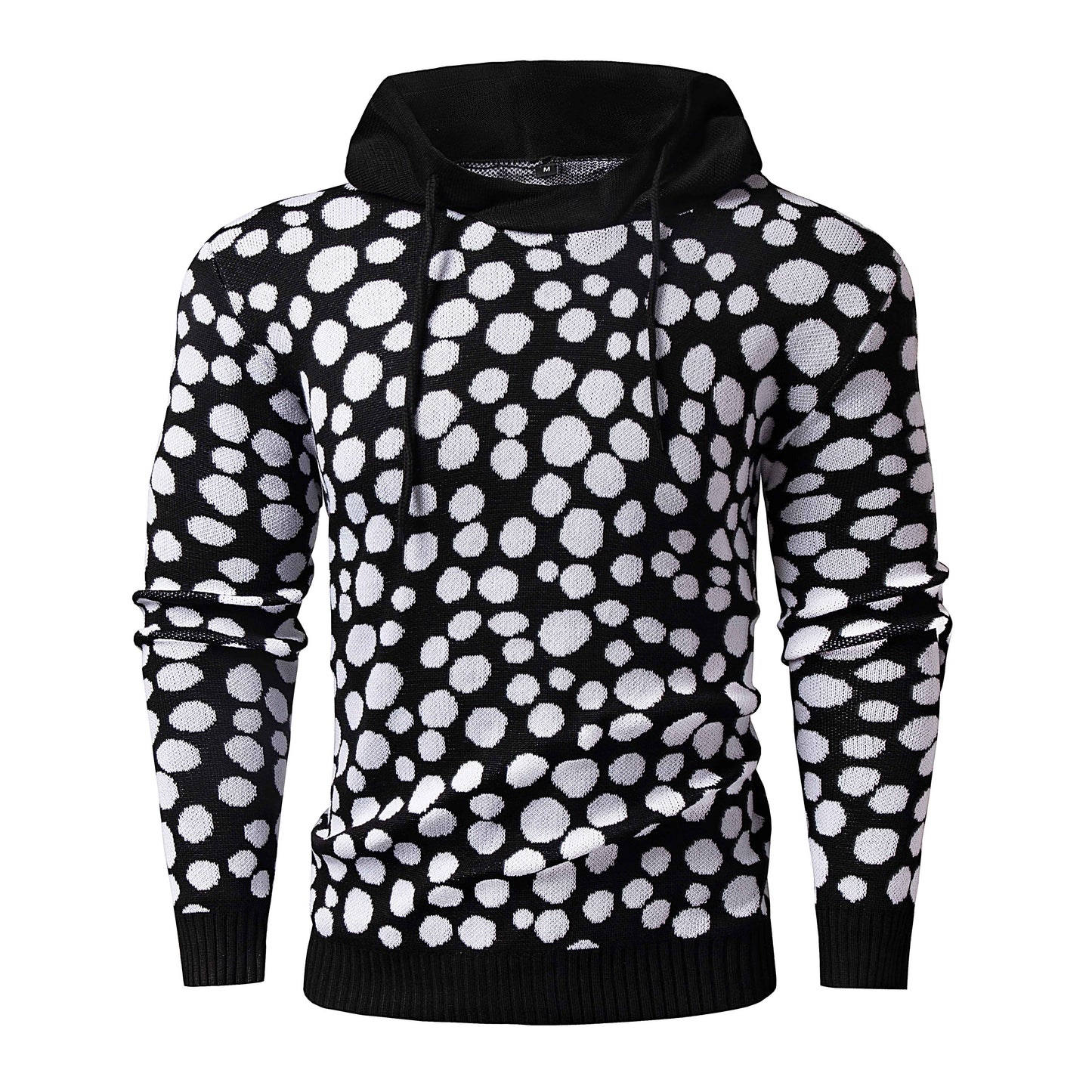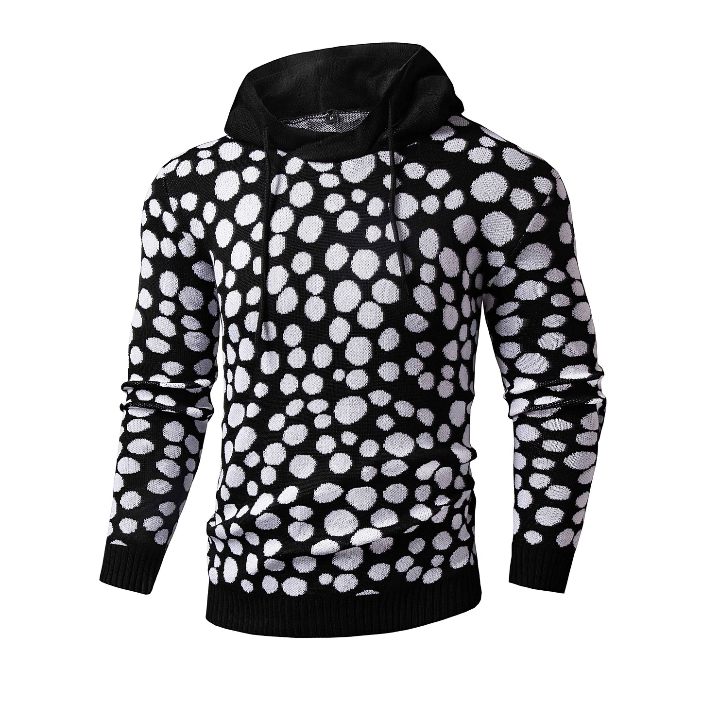 Men's hooded knitted sweatshirt geometric pattern casual autumn and winter style
