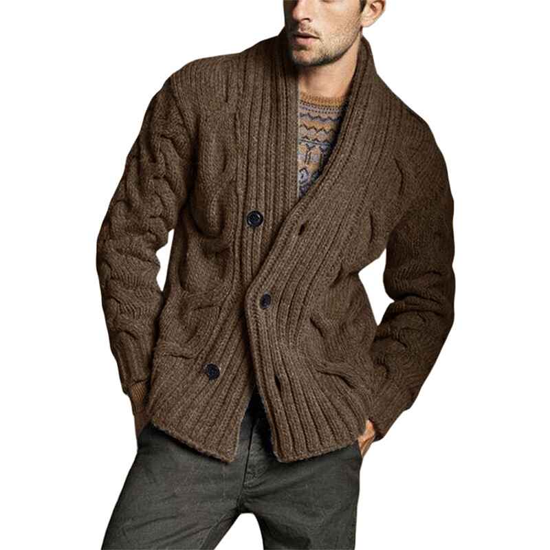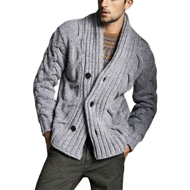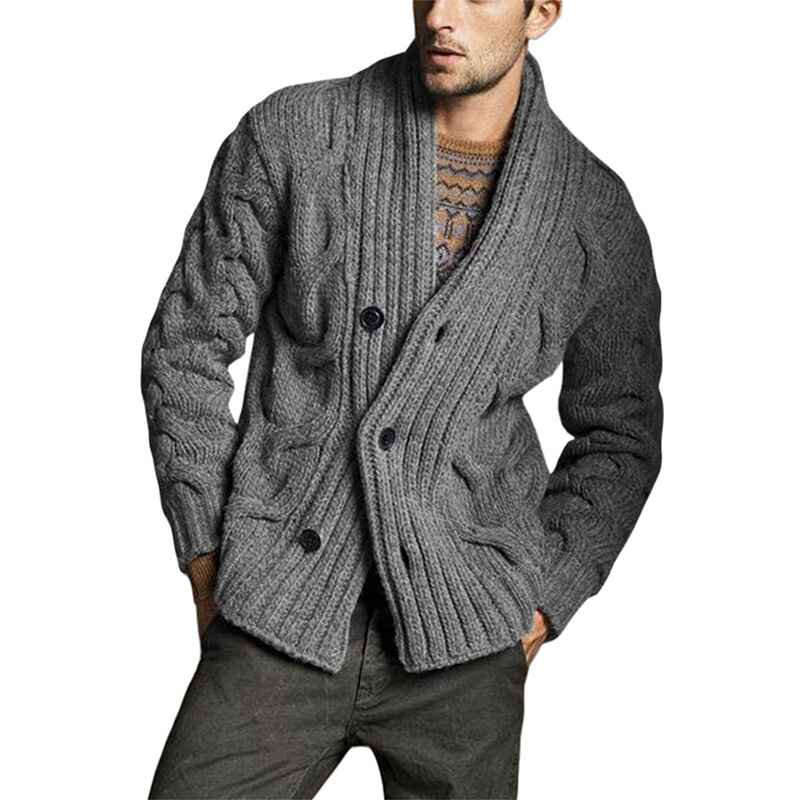 Men's Cable Knit Cardigan Sweater Shawl Collar Loose Fit Long Sleeve Casual G062