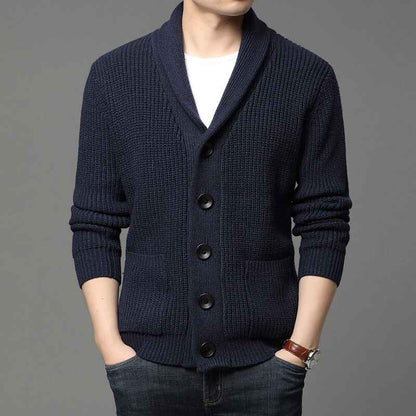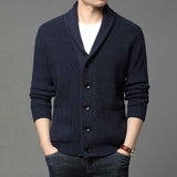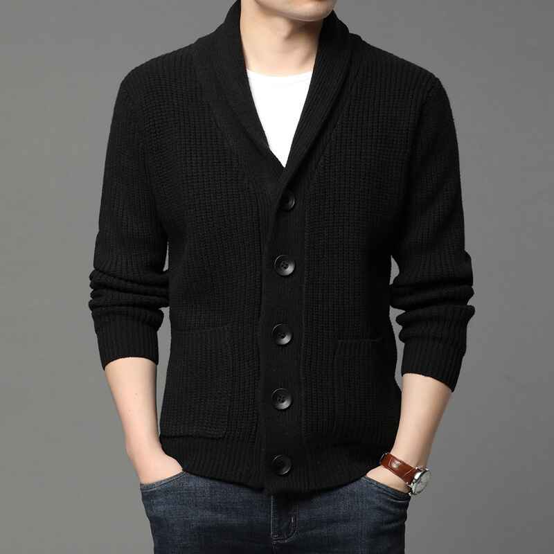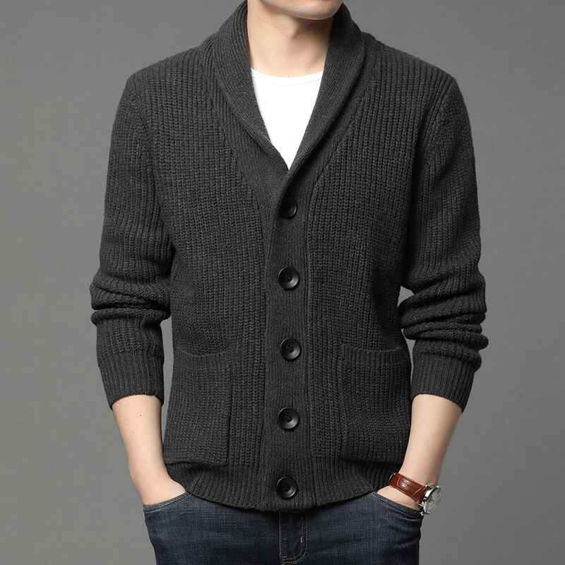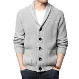 Men's Shawl Collar Cardigan Casual Long Sleeve Open Front Knit Sweater Coat with Pockets G004