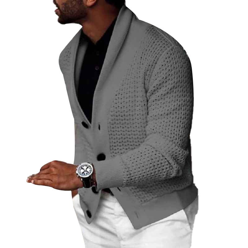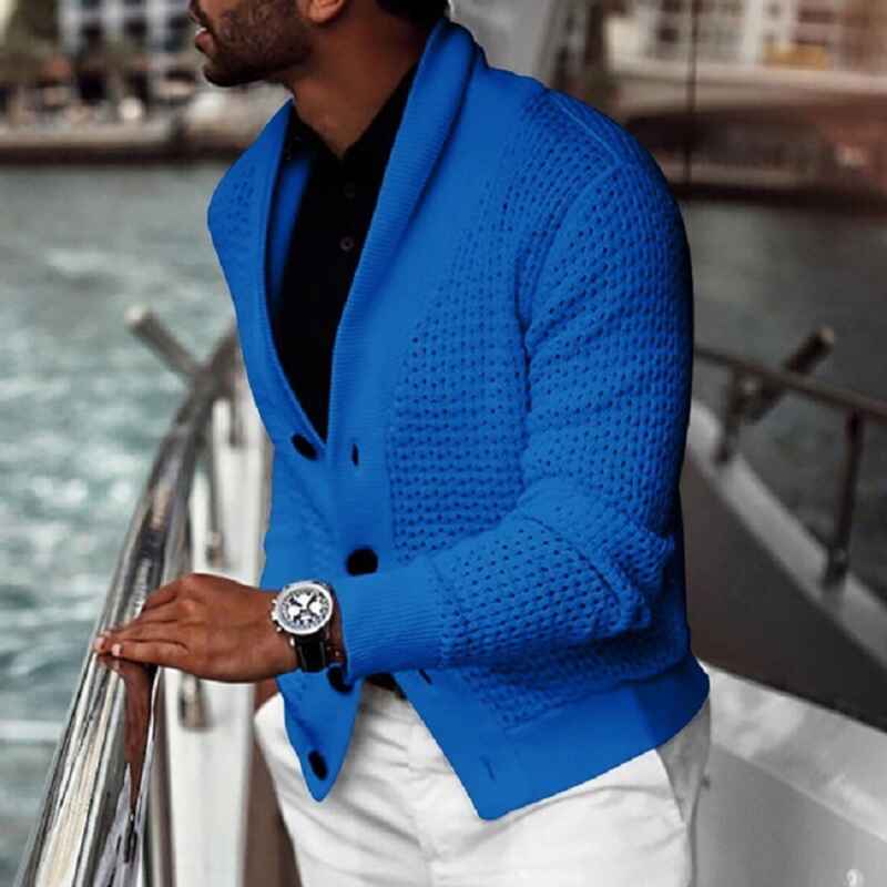 Men's Slim Fit Cable Knit Sweaters Cardigans Button Long Sleeve Lapel Coat G008