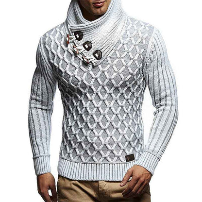 Men's Sweater Knitted Shawl Turtleneck Pullover Winter Hip Hop Streetwear Slim Sweater G014