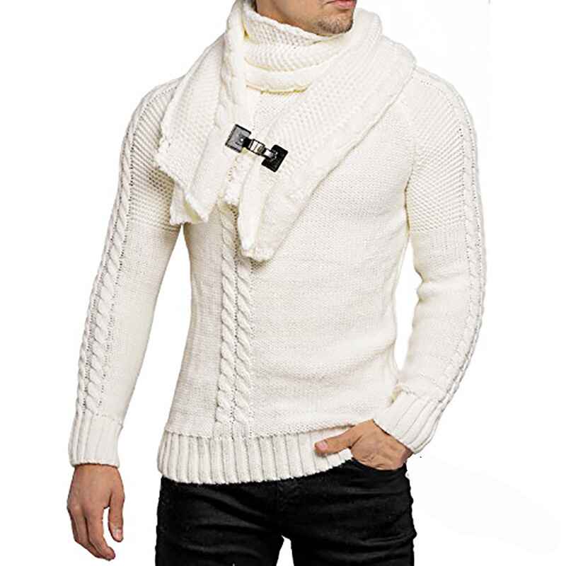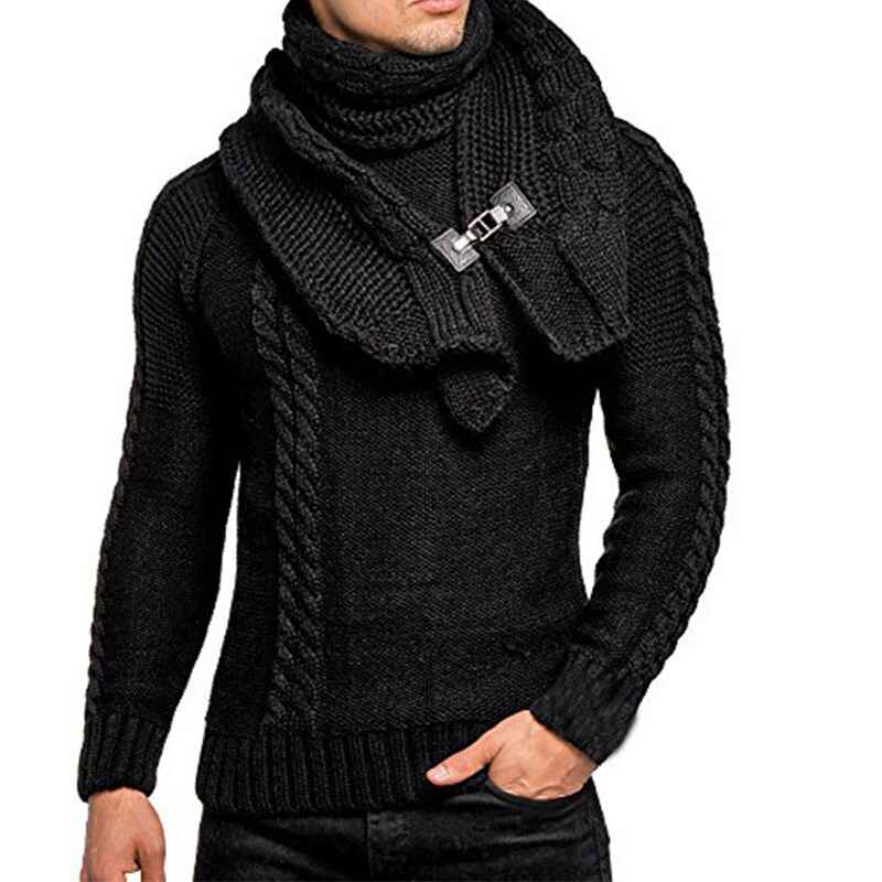 Men's Knitted Turtleneck Sweater Long Sleeve Slim Fit Designer Shawl Collar Pullover G016