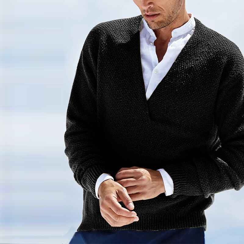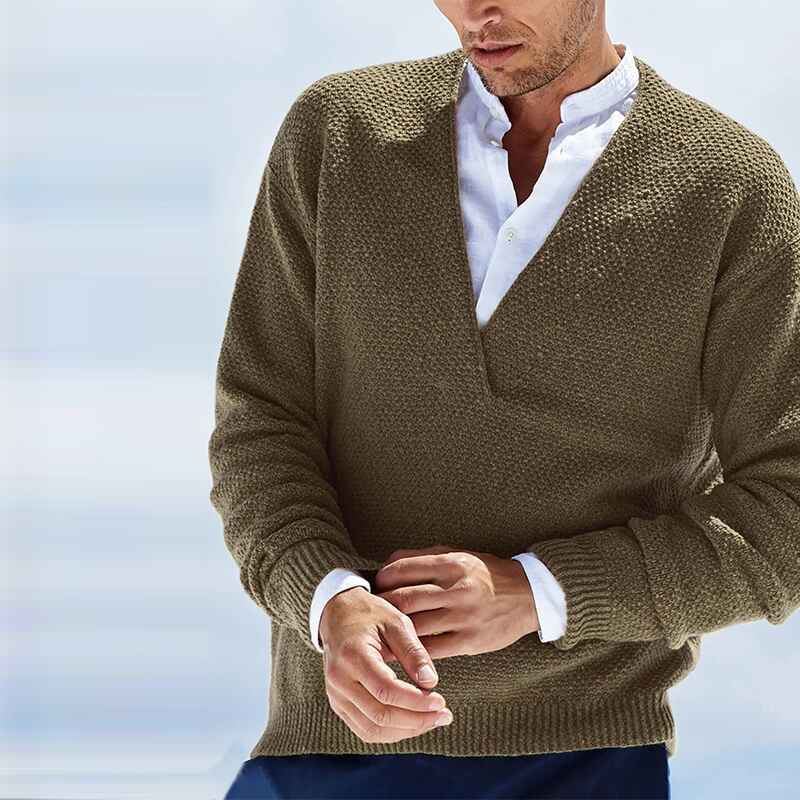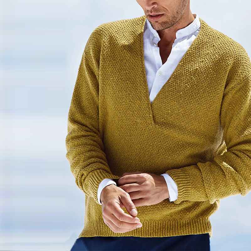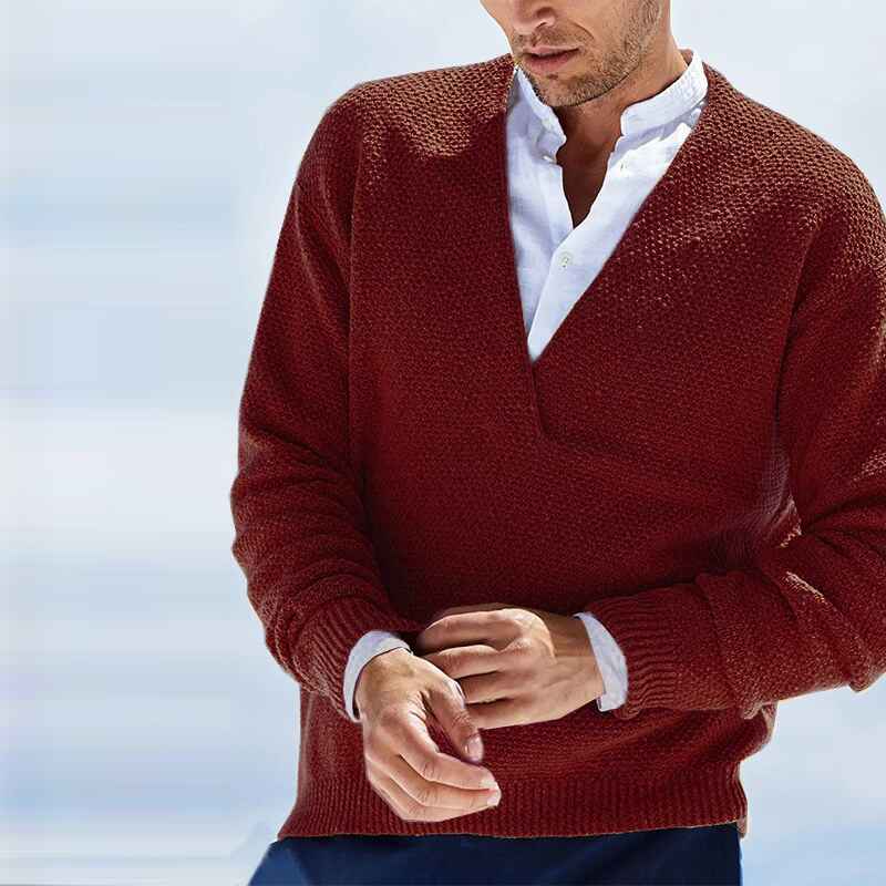 Men's Knit V-Neck Sweater Cashmere Wool Long Sleeve Classic Pullover G018