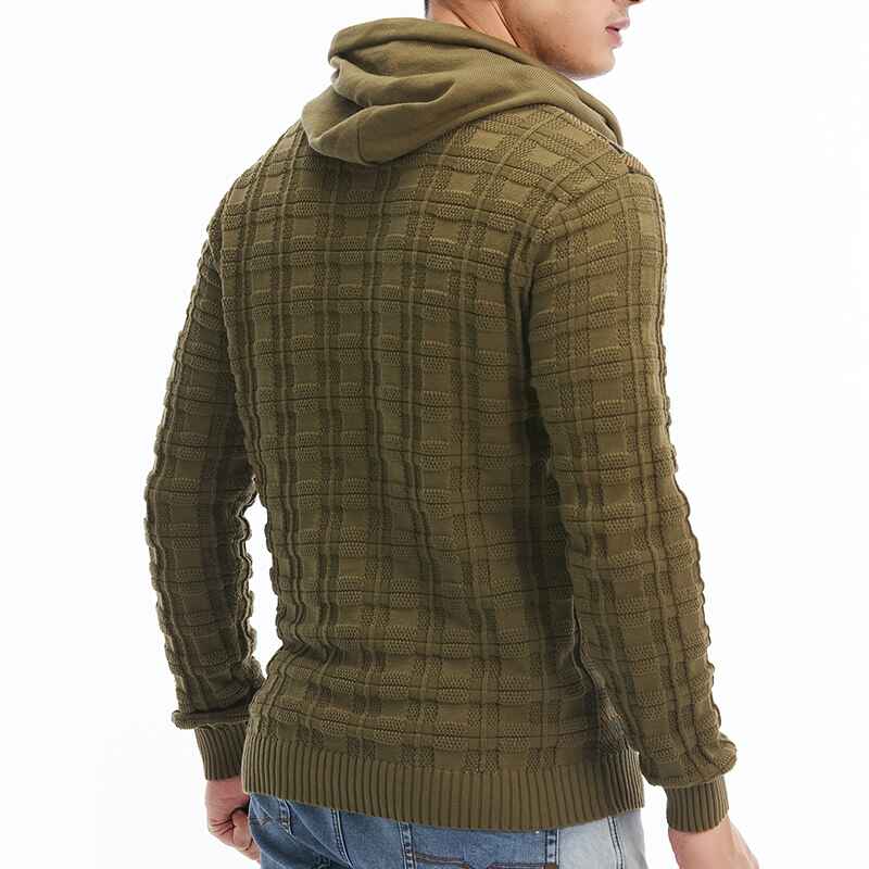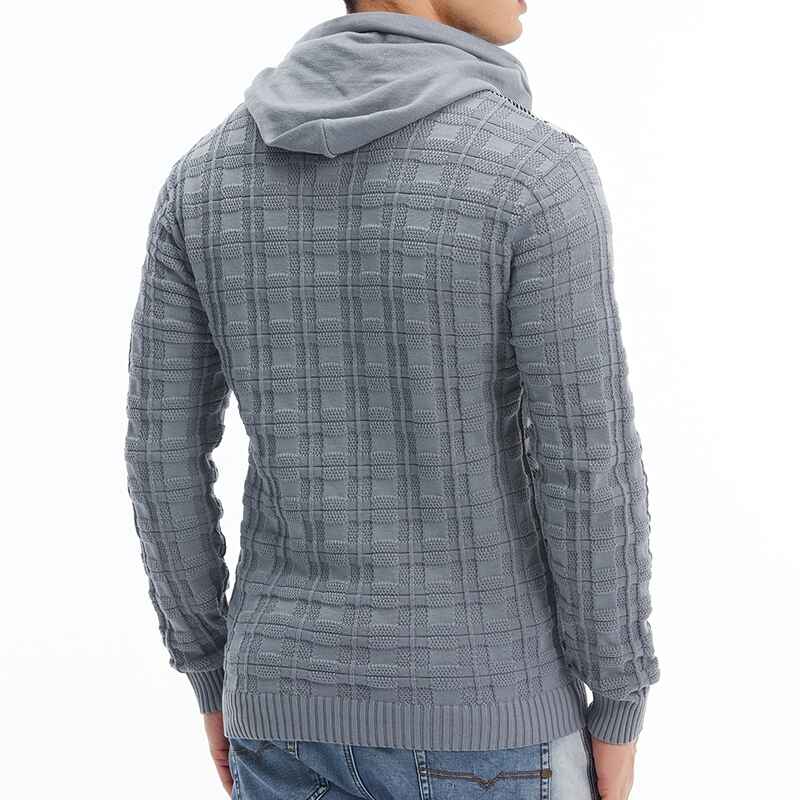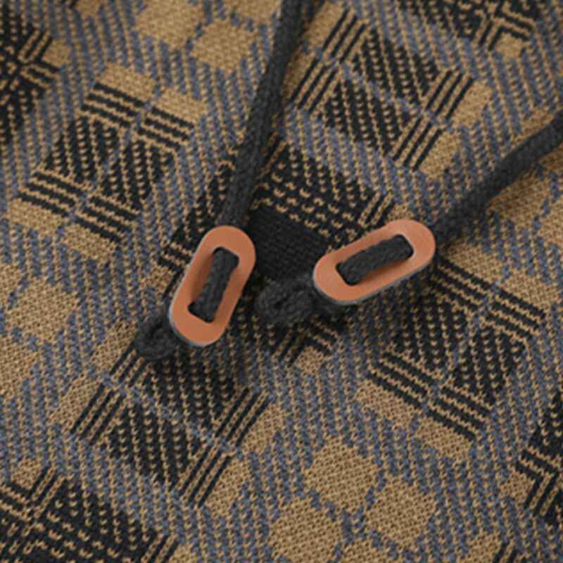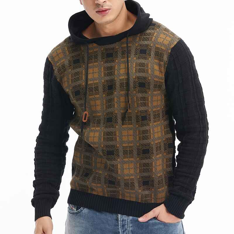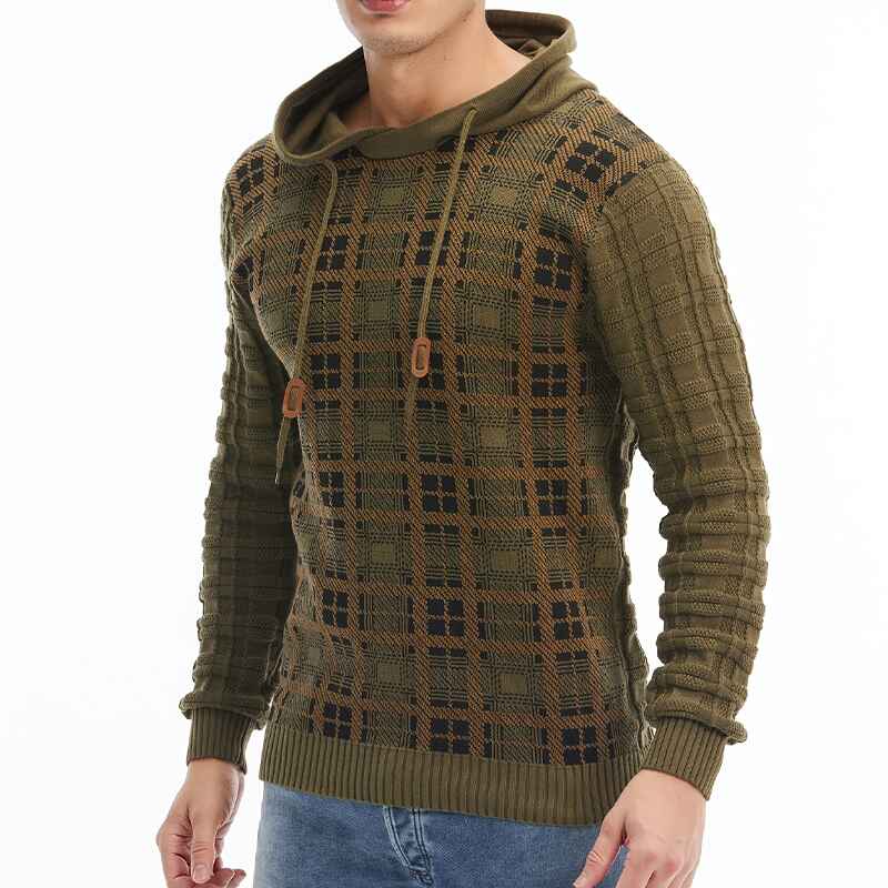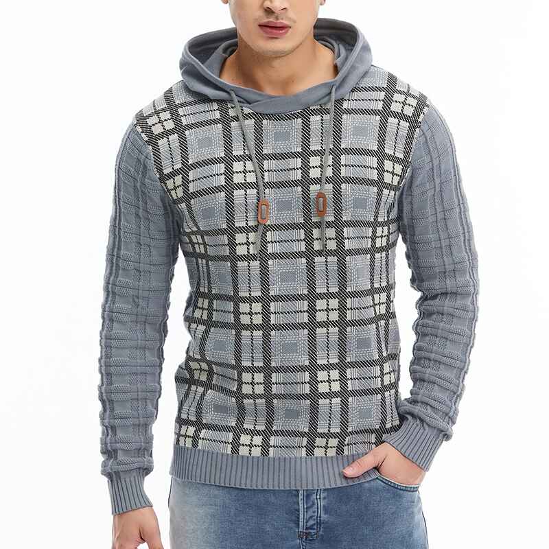 Men's Slim Checkered Long Sleeve Hooded Sweater With Drawstring Best Sellers G093