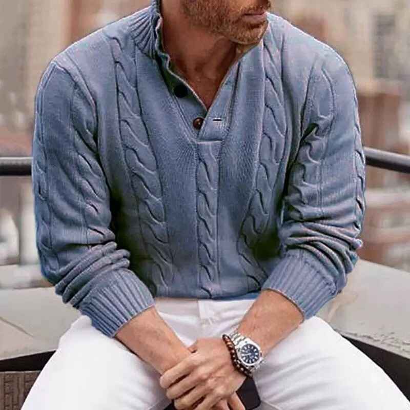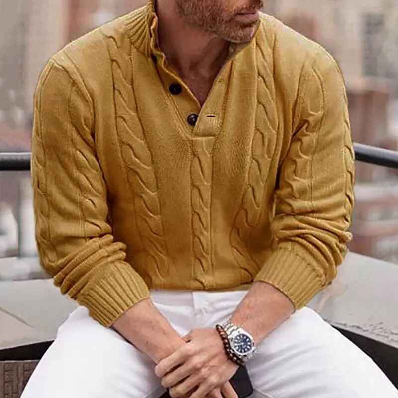 Men's Long Sleeve Polo Sweater Casual Quarter Button Up Lapel Collar Fall Winter Tops for Men G063