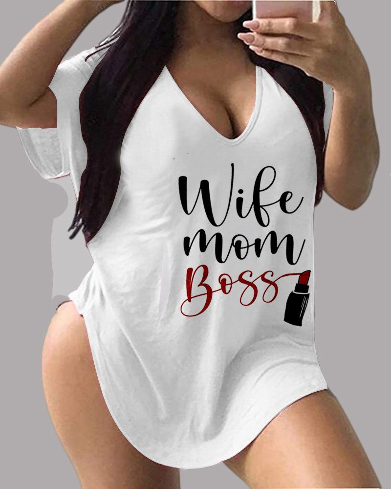 Mother's Day Gift V Neck Letter Print Short Sleeve T shirt