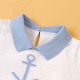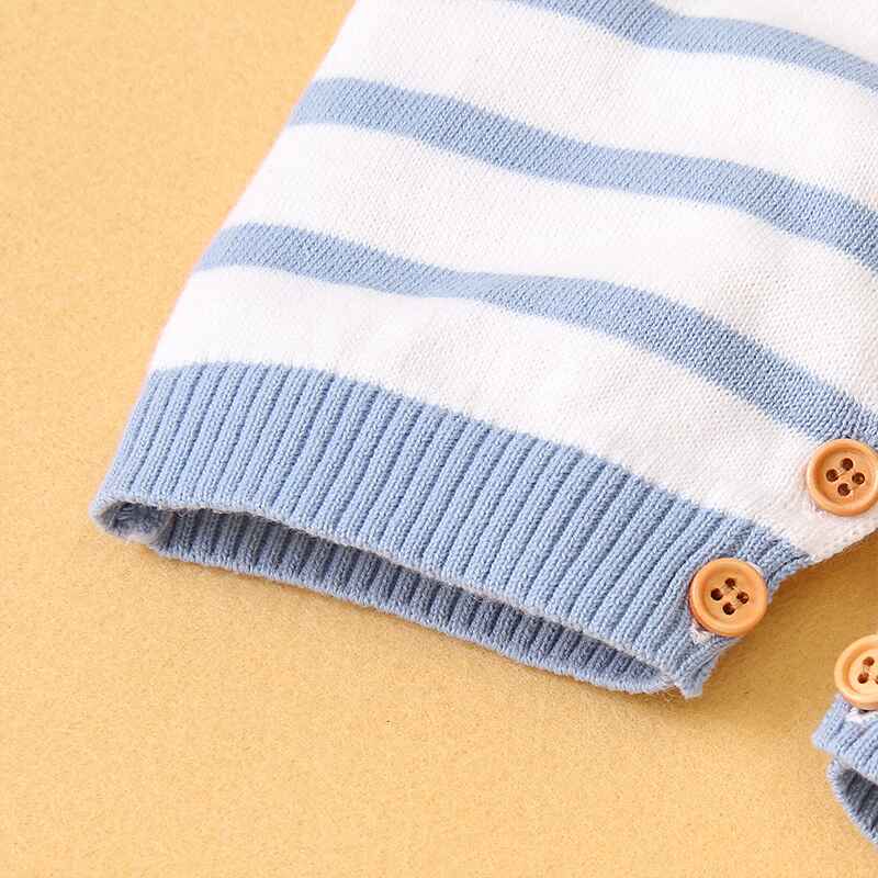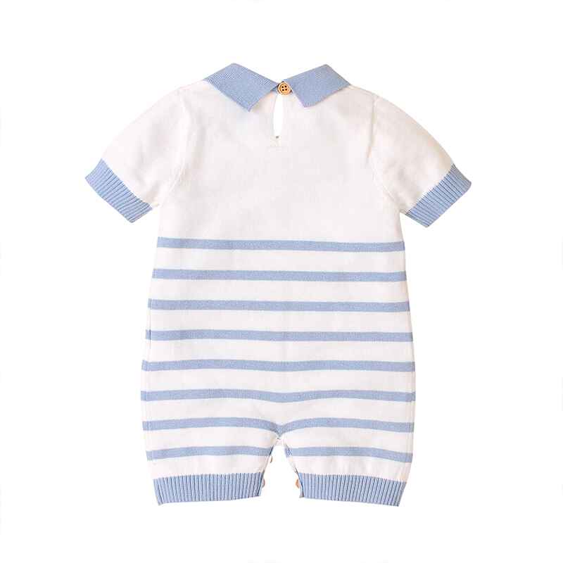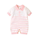 Newborn Baby Boy Girls Knitted Short Sleeve Striped Bodysuit Lapel Jumpsuit Jumpsuit Set Short Sleeve A019