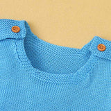 Newborn Baby Boys Knitted Sleeveless Cute Elephant Pattern Bodysuit Jumpsuit Set Sleeveless A014