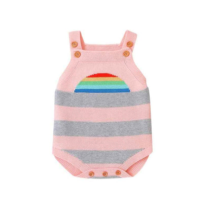 Newborn Baby Girl Knit Rainbow Romper Bodysuit Sleeveless Square Neck Jumpsuit A029
