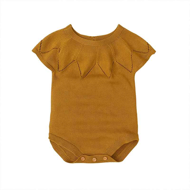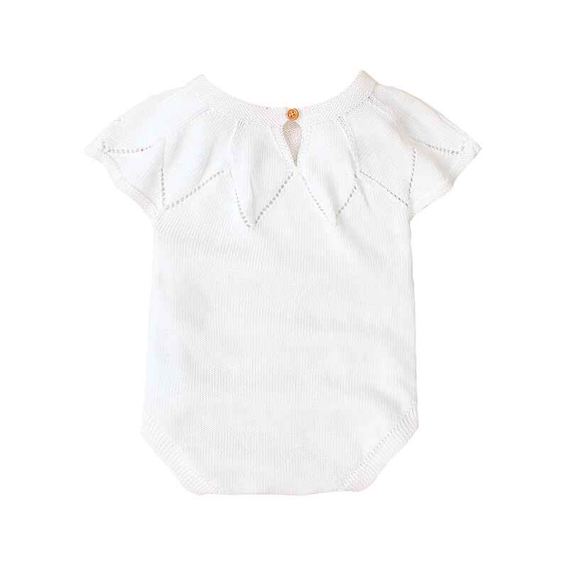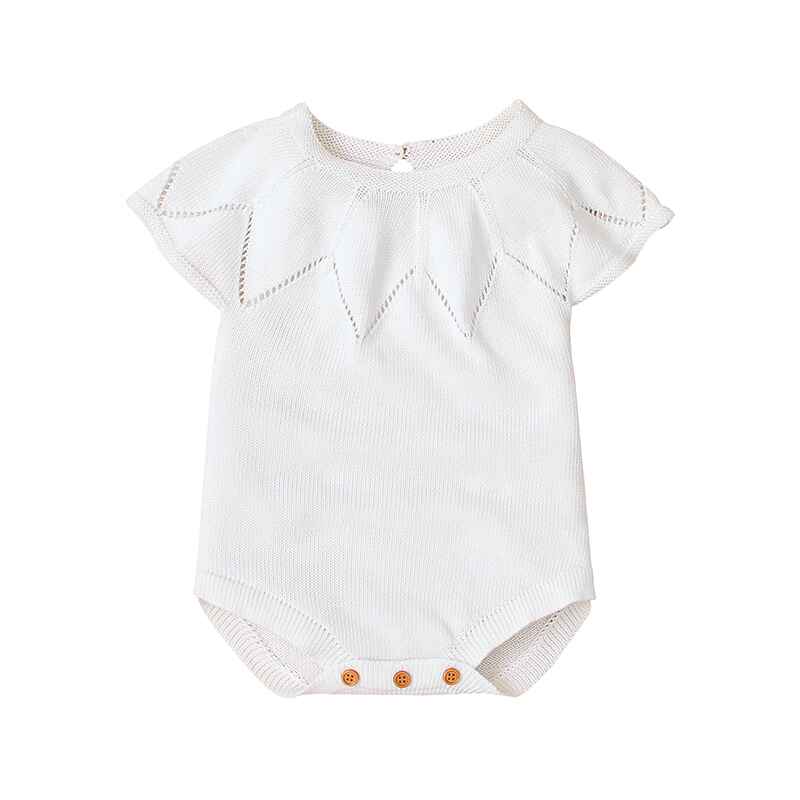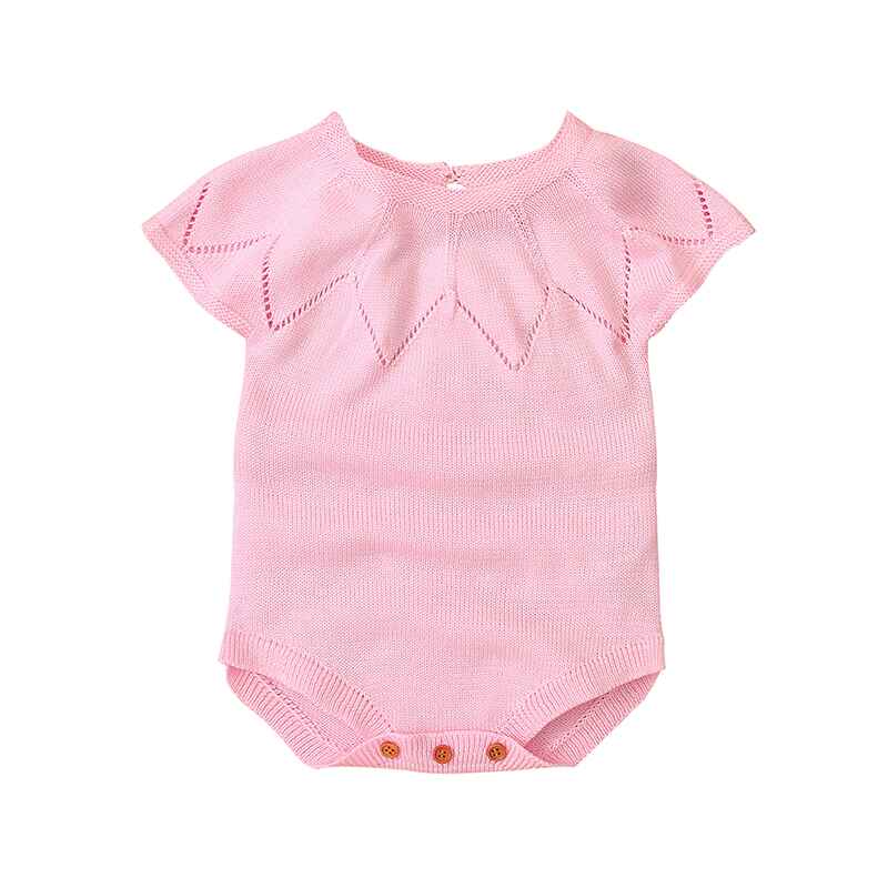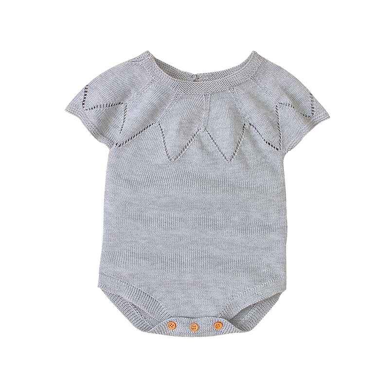 Newborn Baby Girl Knit Short Sleeve Neckline Bodysuit Jumpsuit Set Short Sleeves A012