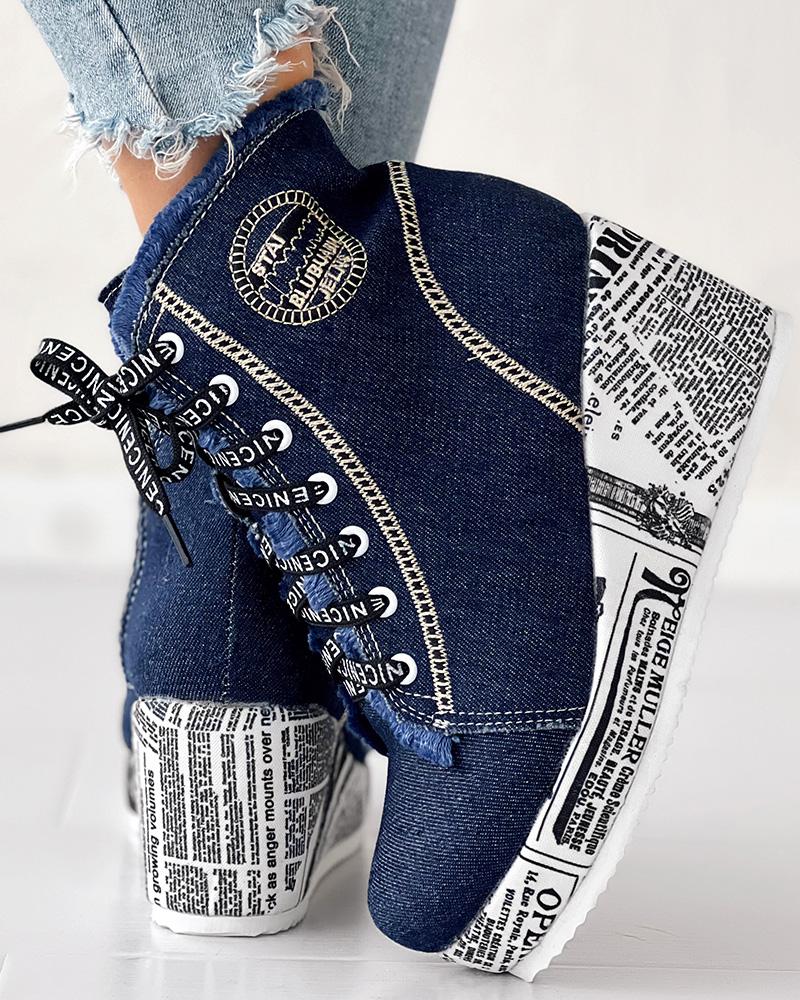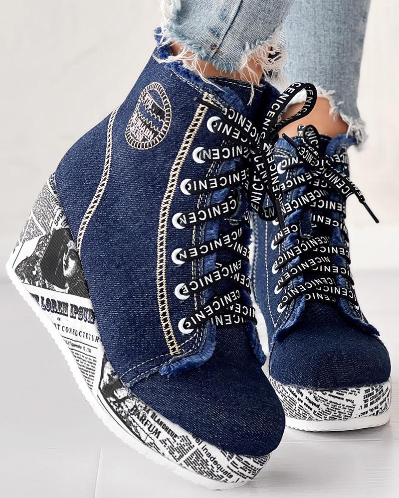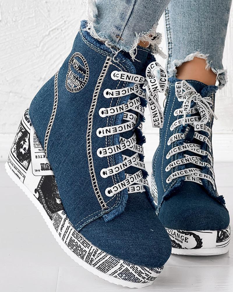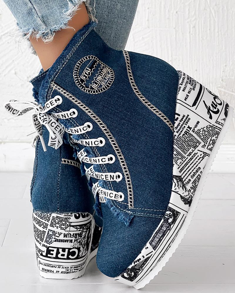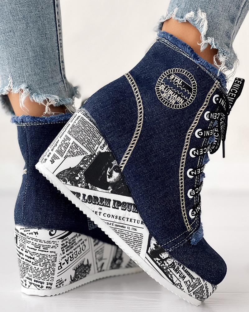 Newpaper Lace up Raw Hem Wedge Denim Ankle Boots