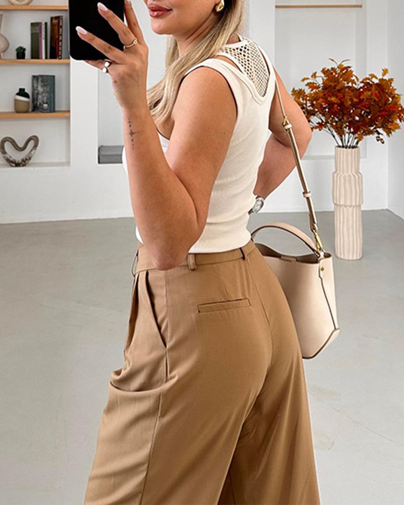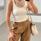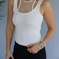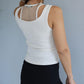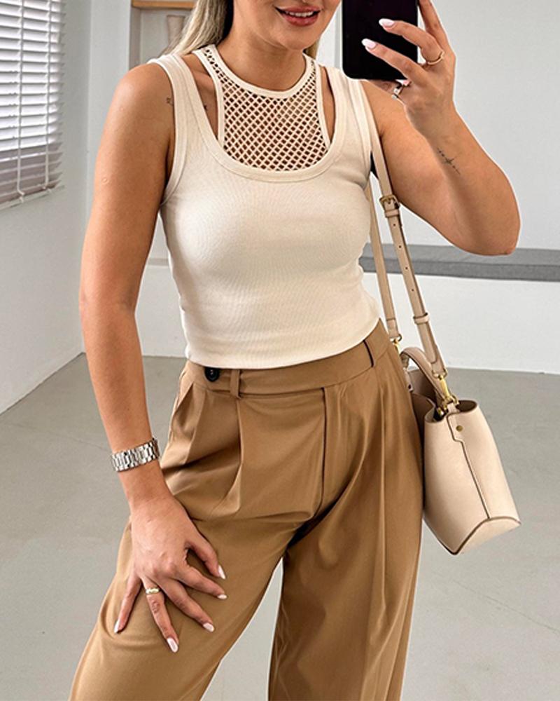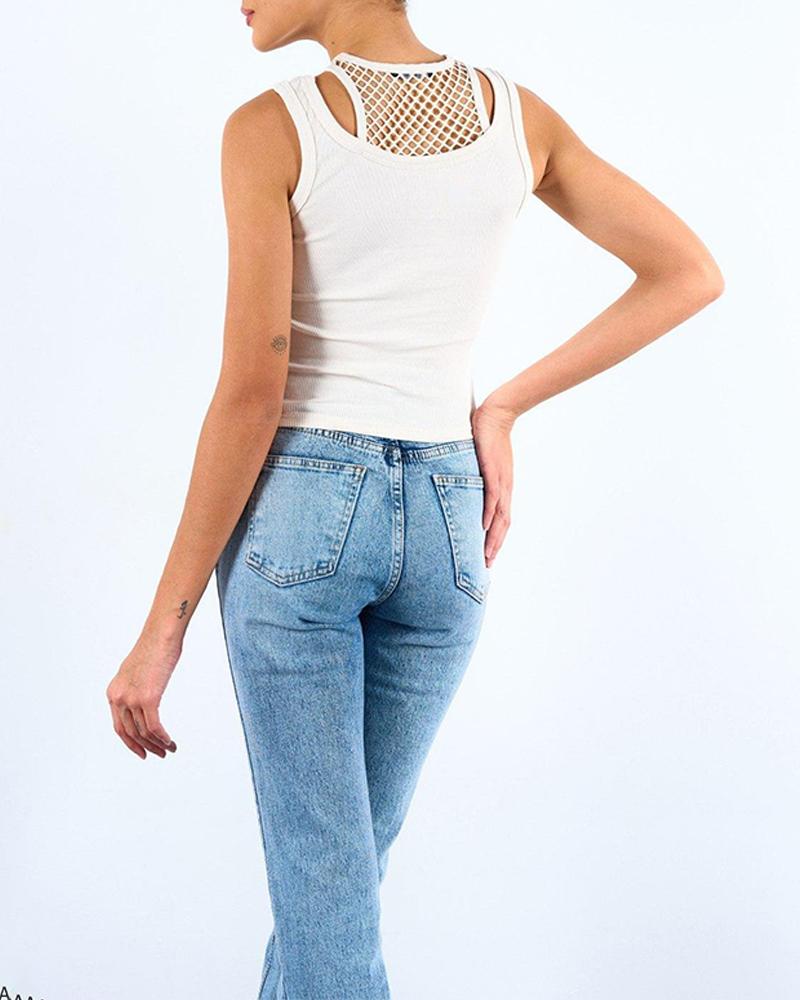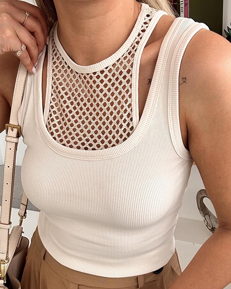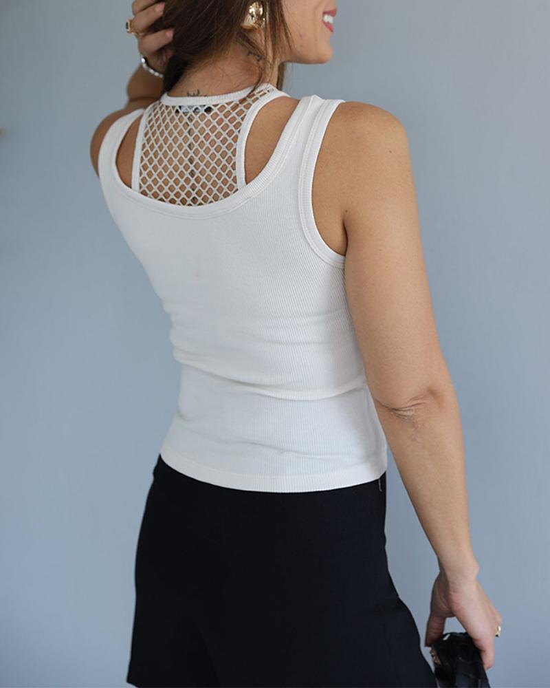 O neck Fishnet Patch Tank Top