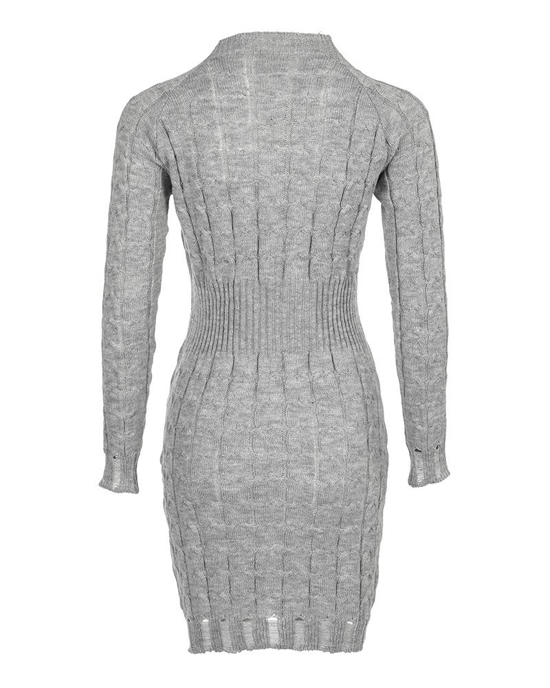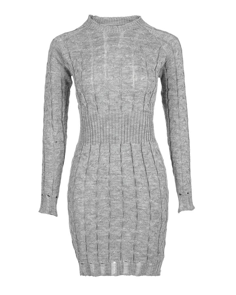 O Neck Long Sleeve Bodycon Braided Sweater Dress