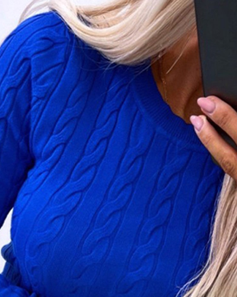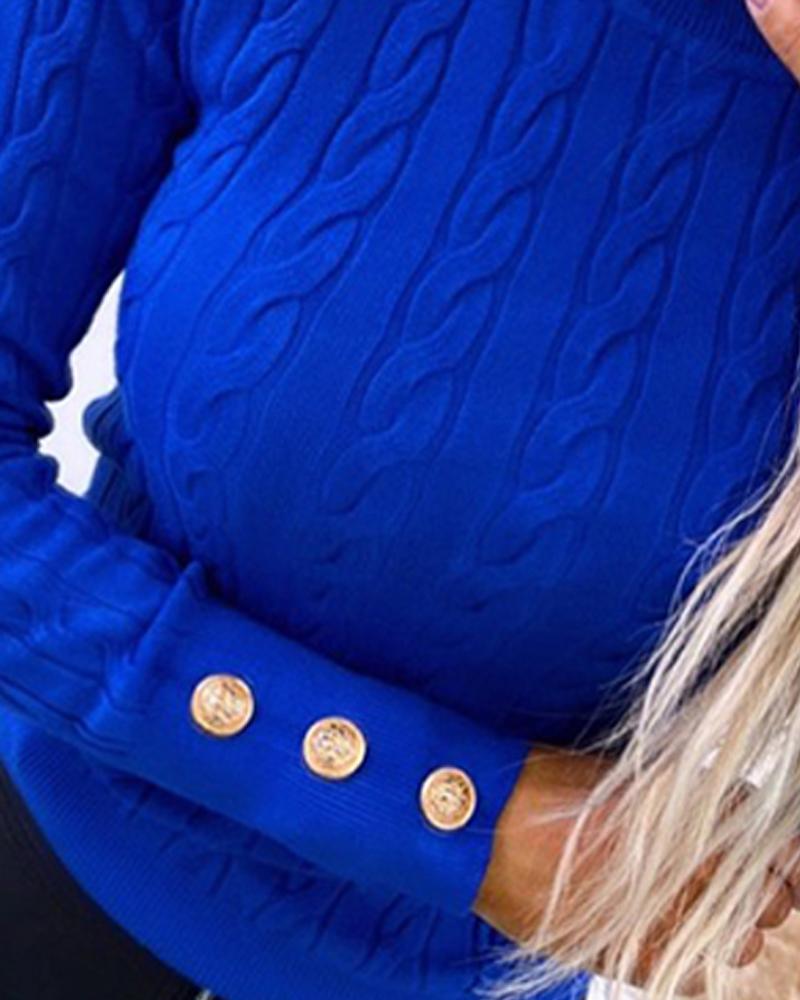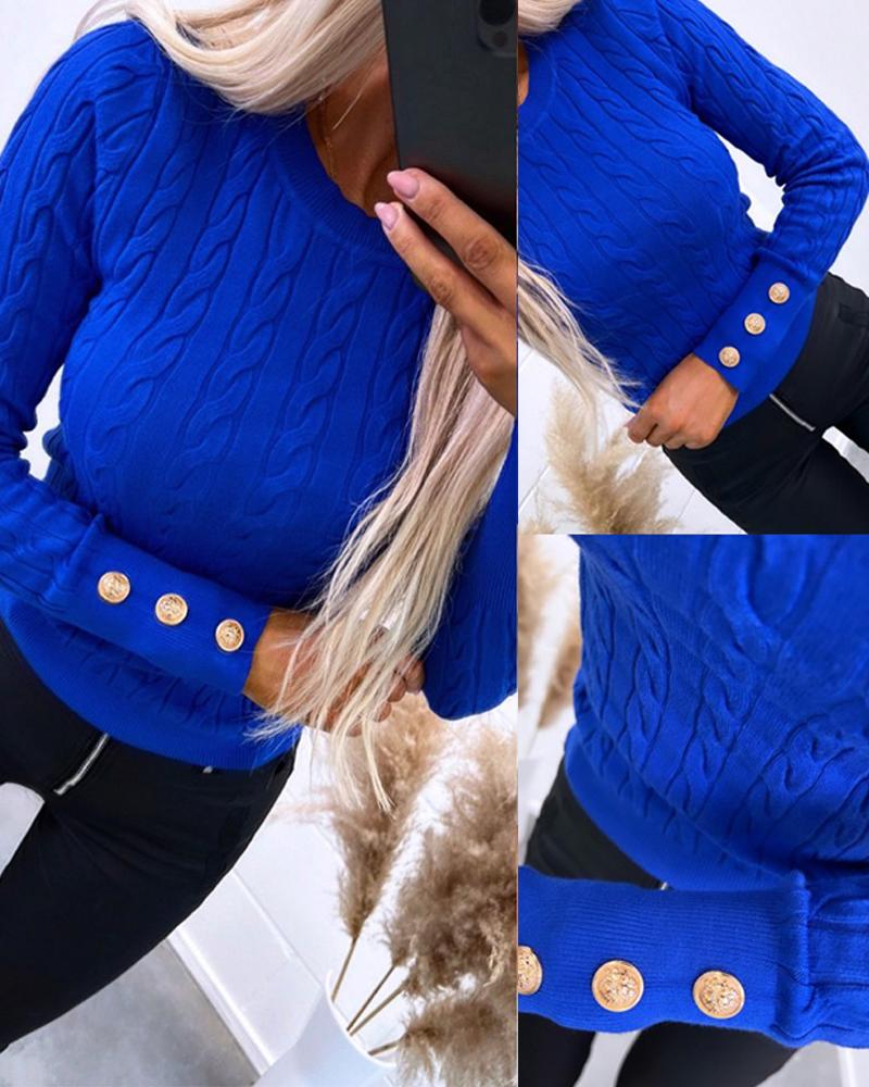 O neck Long Sleeve Buttoned Braided Knit Sweater
