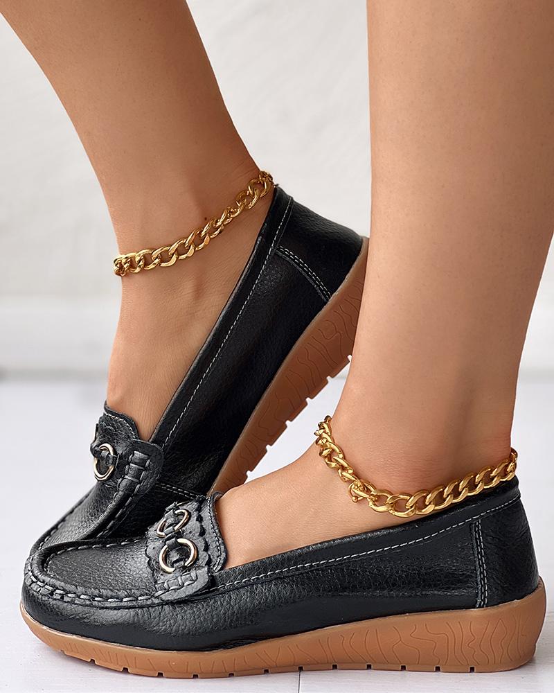 O Ring Decor Comfort Casual Wedge Loafers