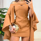 Off Shoulder Asymmetrical Bell Sleeve Hollow out Party Dress Cinched Waist Slim Fit A Line Dress
